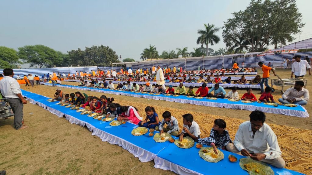 बिलासपुर। पिछले नौ दिनों से अनुरागी धाम मोतीमपुर में चल रहे श्री अखंड नवधा रामायण समारोह का आज विशाल भंडारे के साथ समापन हो गया।हर वर्ष की भांति इस बार भी संत शिरोमणि सच्चिदानंद सद्गुरु स्वामी अनुरागी जी के स्नेह आंचल में मर्यादा पुरुषोत्तम भगवान श्री राम के स्नेह में श्री अखंड नवधा रामायण समारोह का आयोजन 29 दिसंबर से किया जा रहा था। प्रतिदिन यहां दूरदराज से आई हुई मानस मंडलियों द्वारा नवधा रामायण का वाचन किया जा रहा था। बड़ी संख्या में ग्रामीण श्रद्धालु इस रामायण पाठ का श्रवण कर रहे थे। हर साल की तरह इस बार भी 7 जनवरी 2024 रविवार को हवन,शहस्त्र धारा,कन्या भोज के साथ ही विशाल भंडारा लगाया गया जिसमे बिलासपुर,रायपुर,मुंगेली जांजगीर,पेंड्रा,मुंबई,पुणे,गुजरात,दिल्ली, बेंगलुरु,कोलकाता,मध्य प्रदेश के अलावा भारत के बाहर ऑस्ट्रेलिया और मोतीमपुर सहित आसपास के करीब 40 गांव के श्रद्धालु शामिल होकर प्रसाद ग्रहण किया। 7 जनवरी की सुबह 10:30 बजे आरती 12:00 बजे सहस्त्र धारा,कन्या भोज के बाद दोपहर 1:00 से विशाल भंडारा का आयोजन किया गया था। जिसमें इस बार भी लगभग 40,000 श्रद्धालुओं के द्वारा प्रसाद ग्रहण किया गया। कार्यक्रम में देशभर से साधु संत आकर इसमें शामिल हुए जिसमें वृंदावन से पुरुषोत्तम महाराज,चित्रकूट धाम से राधेश्याम महाराज,रतनपुर राम टेकरी से श्री शुक्ला महाराज, मसूरी उत्तराखंड के लवदास महाराज के अलावा अन्य स्थलों के भी साधु संत यहां अपना आशीष देने मौजूद थे।