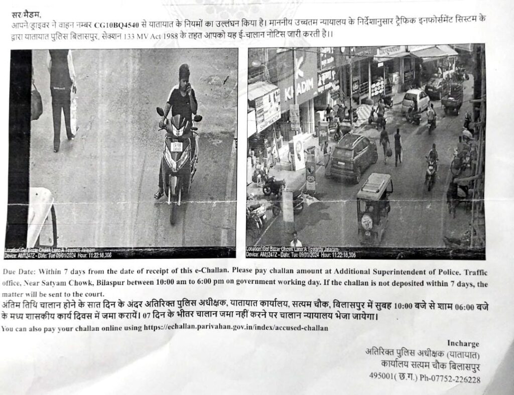 इस संबंध में उप पुलिस अधीक्षक संजय साहू ने बताया कि ई चालान के माध्यम से नियम तोड़ने वालों के पते पर ही चलान पहुंच रहा है जो की ट्रैफिक थाना बिलासपुर में आकर अपने चालान का निराकरण करते हैं जिसमें 340 लोग ने चालान करवाया आज 3,42,500/- का सुमन शुल्क प्राप्त किया गया।
