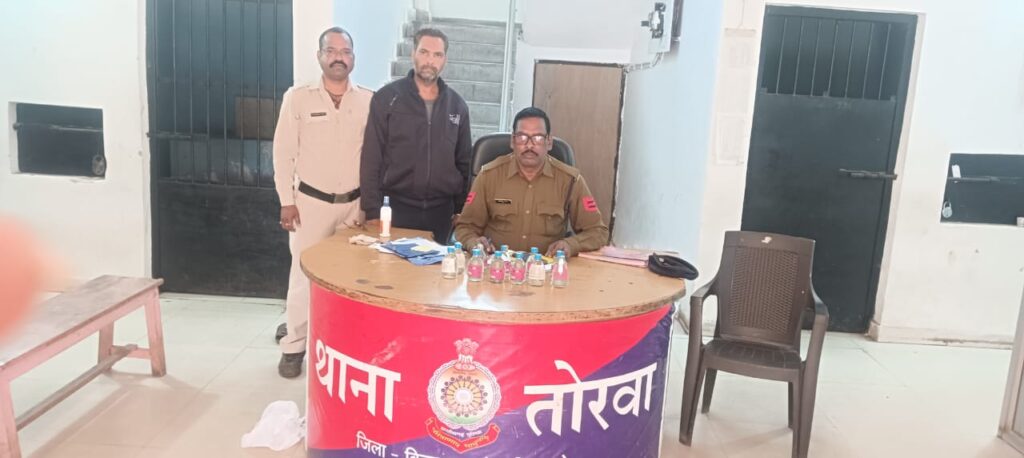 निजात अभियान के तहत तोरवा पुलिस ने आरोपी दर्रीघाट निवासी अविनाश दुबे के पास से करीब 2 लीटर देसी शराब बरामद किया जिसकी कीमत ₹300 है। पुलिस ने यह कार्रवाई मुखबिर की सूचना के बाद की। पुलिस को सूचना मिली थी कि एक व्यक्ति तोरवा मुर्रा भट्ठा के पास ठेले में देसी शराब रखकर बेच रहा है। इसके बाद पुलिस ने अविनाश दुबे पर कार्रवाई की।