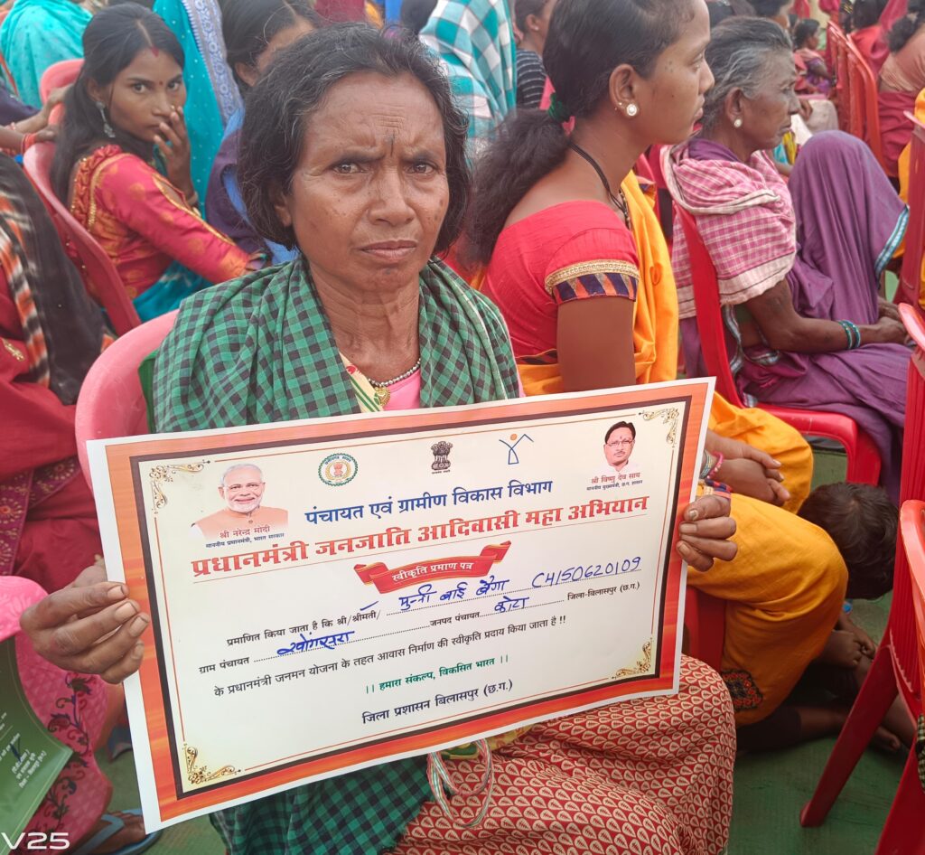 बिलासपुर, 15 जनवरी 2024/बैगा और बिरहोर जनजाति समुदायों के दिन अब बहुरने लगे है। इसकी बानगी आज खोंगसरा में पीएम जनमन योजना के तहत आयोजित कार्यक्रम में देखने को मिली। आवास योजना, हर घर नल जल योजना, उज्जवला योजना सहित विभिन्न योजनाओं का लाभ मिलने से समुदाय के हितग्राही गदगद है। कार्यक्रम में ग्राम पंचायत खोंगसरा की श्रीमती मुन्नी बाई बैगा के चेहरे पर एक बड़ी मुस्कान खिल गई। जब उन्हें प्रधानमंत्री जनमन योजना के तहत आवास निर्माण की स्वीकृति मिली। श्रीमती मुन्नी बाई बैगा बताती है कि पहले वह कच्चे मकान में गुजर-बसर कर रही थी। योजना के तहत आवास निर्माण के लिए 40 हजार की पहली किश्त एवं आवास निर्माण स्वीकृति प्रमाण पत्र मिल जाने से अब वह चिंतामुक्त होकर अपना जीवन यापन कर सकेंगी।