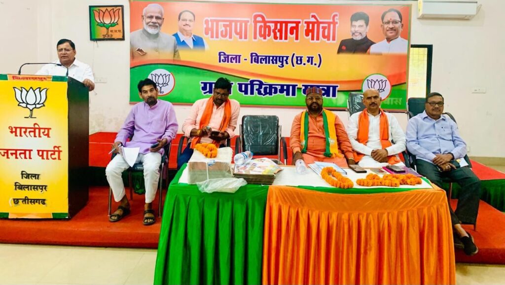 बिलासपुर। ग्राम परिक्रमा यात्रा कार्यक्रम एवं रायपुर में 9 मार्च को श्री राजनाथ सिंह केन्द्रीय रक्षा मंत्री भारत सरकार के मुख्य आतिथ्य में किसान महाकुम्भ आयोजित है जिसकी तैयारियों को लेकर भारतीय जनता पार्टी किसान मोर्चा जिला बिलासपुर की बैठक भाजपा कार्यालय बिलासपुर में सम्पन्न हुई।