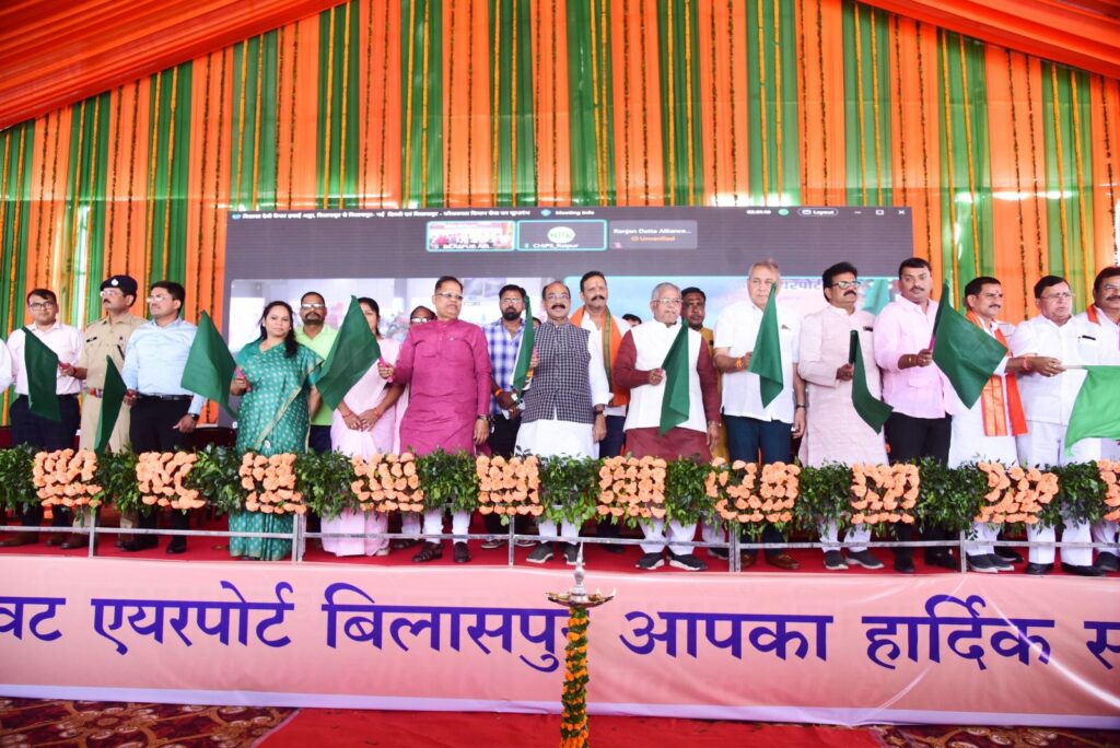 मुख्यमंत्री श्री विष्णु देव साय ने आज अपने निवास कार्यालय रायपुर से वर्चुअली हरी झंडी दिखाकर बिलासा देवी केंवट विमानतल, बिलासपुर से बिलासपुर-दिल्ली और बिलासपुर-कोलकाता सीधी हवाई सेवा का शुभारंभ किया। उप मुख्यमंत्री श्री अरुण साव सहित अनेक जनप्रतिनिधि बिलासा देवी केंवट विमानतल पर तथा मुख्यमंत्री निवास पर लोकसभा सांसद श्री सुनील सोनी उपस्थित थे।