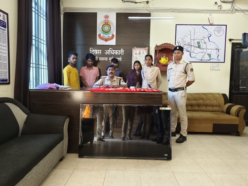सरकंडा पुलिस ने 3 महीने पहले सूने मकान में हुई चोरी का पर्दाफाश करते हुए चार आरोपियों को गिरफ्तार किया है । आरोपियों के कब्जे से चोरी गई सोने चांदी के जेवरात, टीवी सहित करीब 90 फ़ीसदी सामग्री बरामद कर ली गई है। सिद्धि विहार कॉलोनी में रहने वाली महिला 22 दिसंबर की शाम घर में ताला लगाकर अपने गृह ग्राम बैमा नगोई गई थी। जब 25 दिसंबर को घर लौटी तो देखा कि घर का ताला टूटा हुआ था और अलमारी में रखे सोने चांदी के जेवर एवं नगद करीब 35,000 रुपए के साथ बैंक पासबुक, एटीएम कार्ड और अन्य दस्तावेज गायब थे। मामला दर्ज कर सरकंडा पुलिस चोर की तलाश कर रही थी। इसी दौरान पुलिस को सूचना मिली कि सचिन यादव नाम का एक संदिग्ध युवक चोरी का टीवी बचने के लिए ग्राहक ढूंढ रहा है। शक के आधार पर पुलिस ने उसे हिरासत में लेकर पूछताछ की तो उसने अपने साथी शनी यादव, छोटू उर्फ मुकेश पटेल के साथ मिलकर सिद्ध विहार कॉलोनी में 4 फरवरी को टीवी की चोरी करने की बात स्वीकार कर ली।
