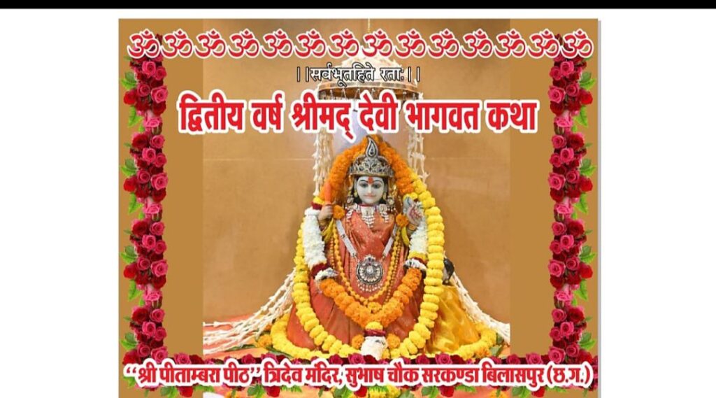 सरकंडा स्थित श्री पीताम्बरा पीठ त्रिदेव मन्दिर में विगत वर्ष के भांति इस वर्ष भी पीताम्बरा पीठ त्रिदेव मंदिर परिसर में चैत्र नवरात्रि के पावन पर्व पर श्री रूद्र चंडी महायज्ञ,श्रीमद् देवी भागवत कथा और भगवान श्रीगणेश, हनुमान एवं भैरव जी का प्रतिमा का प्राण प्रतिष्ठा महोत्सव भी है। श्री पीताम्बरा पीठ सुभाष चौक सरकंडा के पीठाधीश्वर आचार्य दिनेश जी महाराज ने जानकारी देते हुए बताया कि इस वर्ष 9अप्रैल से 17 अप्रैल तक मंदिर में विभिन्न अनुष्ठान संपन्न होंगे, जिसमें देशभर के संत शामिल होंगे।
