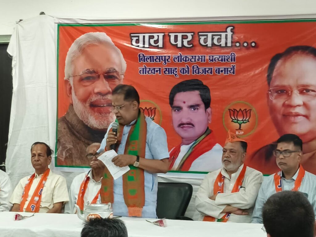 चाय पर परिचर्चा कार्यक्रम में अमर अग्रवाल ने सभी से निवेदन मतदान अवश्य करें इस हेतु अपील करते हुए लोकसभा प्रत्याशी तोखन साहू को कमल छाप मे अपना बहुमूल्य वोट नरेंद्र मोदी जी को प्रधानमंत्री बनाने हेतु सभी से आग्रह किया।