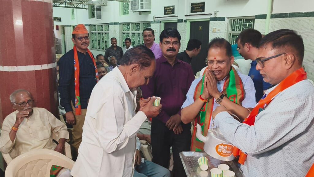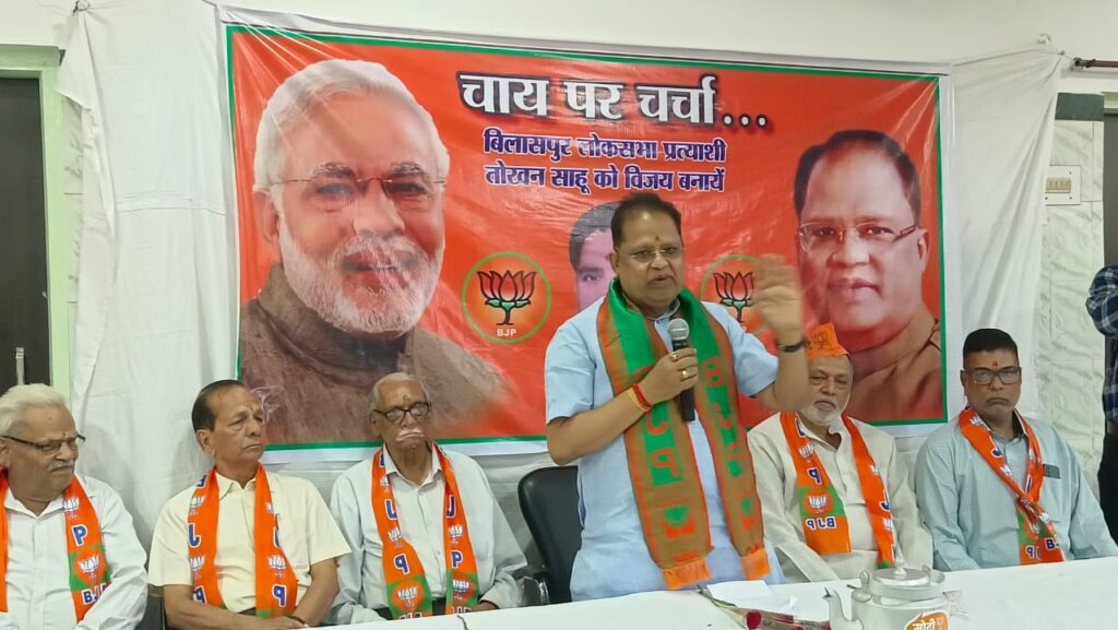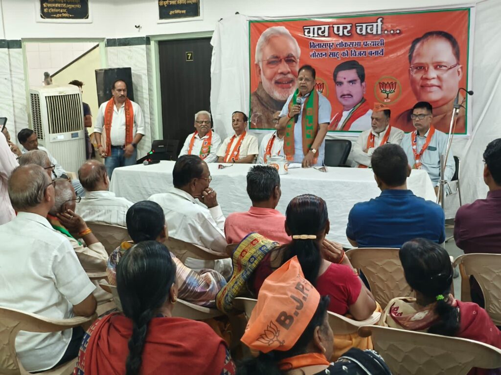 बिलासपुर । भारतीय जनता पार्टी दक्षिण मंडल के अंतर्गत वार्ड क्रमांक 21 , 22, 23, 24 परिक्षेत्र से वार्ड के प्रबुद्ध नागरिक सामाजिक पदाधिकारी माता बहनों एवं युवा साथियों के साथ चाय पर परिचर्चा कार्यक्रम में शहर विधायक श्रीमान अमर अग्रवाल शामिल हुए। विधायक अमर अग्रवाल ने सभी को मतदान करने के लिए जहां प्रेरित किया । वहीं चाय पर चर्चा के दौरान सभी प्रबुद्ध जनों को उन्होंने अपने हाथों से चाय पिलाई।