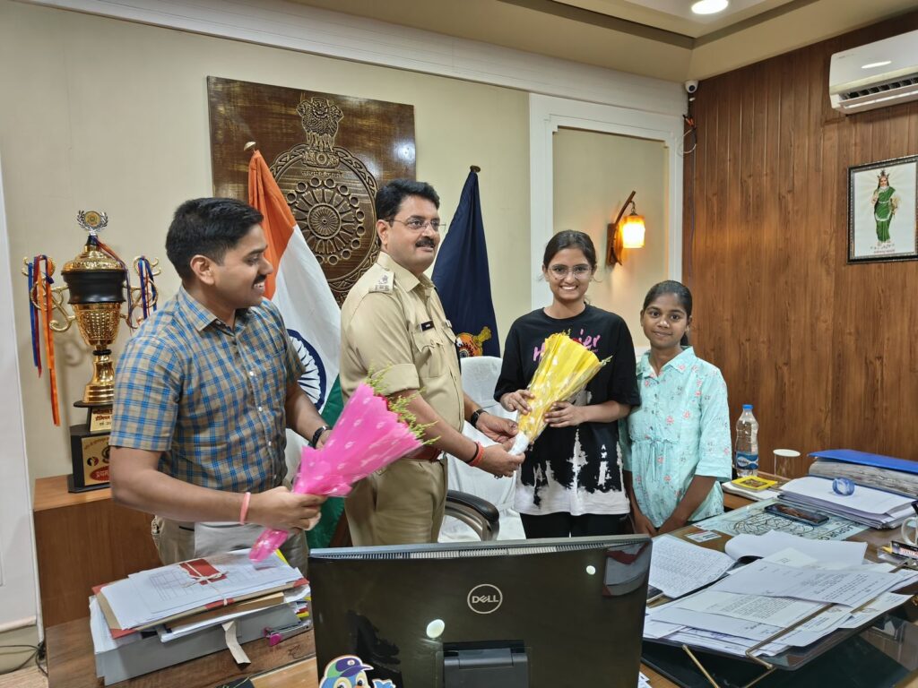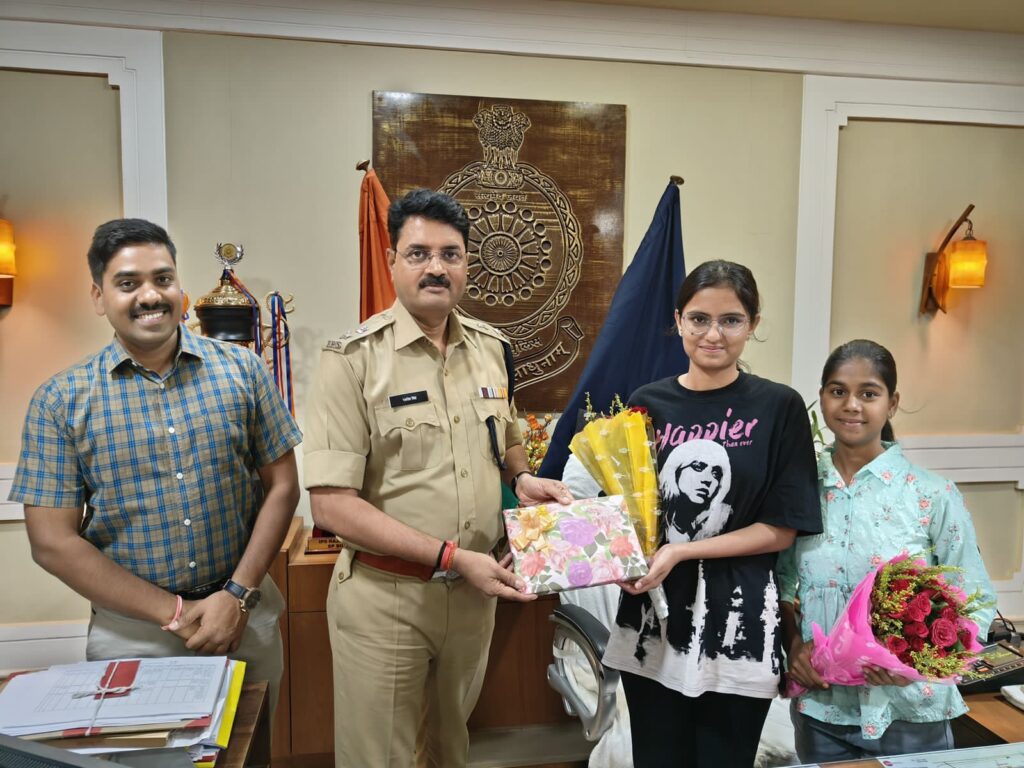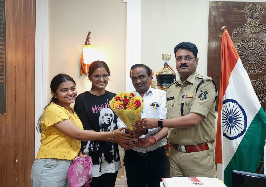 बिलासपुर पुलिस अधीक्षक रजनेश सिंह ने ज़िले की होनहार बेटियों वेदांतिका और प्रिया सम्मान किया और भविष्य के लिए दी शुभकामनाएँ