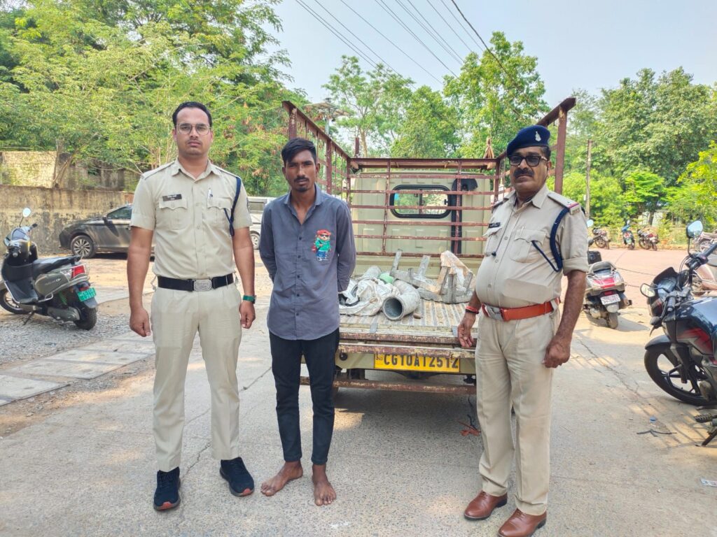 श्रीराम रेडीमिक्स कंपनी के सुपरवाइजर अजय सिंह ने सरकंडा थाने में रिपोर्ट दर्ज करते हुए बताया था कि कंपनी द्वारा अशोकनगर सरकंडा में सामान रखने के लिए यार्ड का निर्माण किया जा रहा है, जहां काम में आने वाले लोहे के पाइप, स्टैंड आदि रखे हुए थे। 21 मई सुबह करीब 6:00 बजे जब सुपरवाइजर यार्ड में पहुंचा तो देखा कि 6 नग लोहे का पाइप और पाइप रखने का दो स्टैंड गायब है। यार्ड में लगे सीसीटीवी कैमरे में देखने से पता चला कि 21 मई की रात एक से 1:30 बजे के बीच गुड लक फर्नीचर का पिकअप वाहन यार्ड में पहुंचा था। पुलिस ने मामला दर्ज कर पिकअप के ड्राइवर शिवा यादव की खोज खबर शुरू की, जिसे हिरासत में लेकर पूछताछ किया गया तो उसने छोटा हाथी में भरकर पाइप ले जाने की बात स्वीकार की। पुलिस ने ₹50,000 कीमती पाइप को बरामद किया है। साथ ही पिकअप को भी जप्त कर लिया है। पुलिस ने पाइप चुराने वाले छोटा हाथी के चालक शिवा यादव को गिरफ्तार कर जेल भेज दिया।