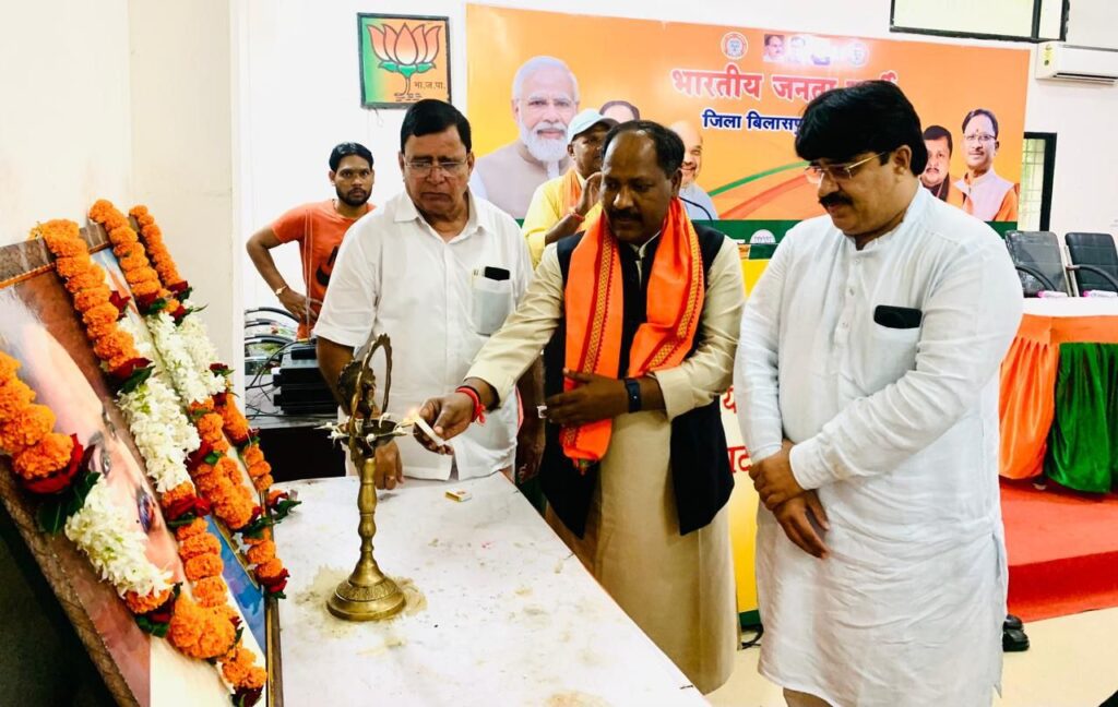 बिलासपुर। सदस्यता अभियान को लेकर भारतीय जनता पार्टी बिलासपुर संभाग के बिलासपुर, रायगढ़, कोरबा, जांजगीर, सक्ति, मुंगेली, जीपीएम के जिला सदस्यता संयोजक, मंडल सदस्यता प्रभारी एवं मंडल सदस्यता संयोजकों की बैठक भाजपा कार्यालय बिलासपुर में सम्पन्न हुई। बैठक की शुरूवात भारत माता, पं.दीनदयाल उपाध्याय, डॉ.श्यामा प्रसाद मुखर्जी के छायाचित्र पर माल्यार्पण एवं दीपप्रज्वलित कर की गई।