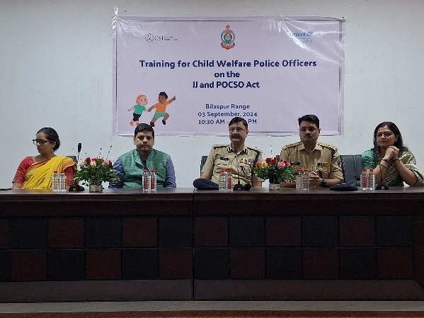पुलिस मुख्यालय छत्तीसगढ़ रायपुर एवं रेंज पुलिस महानिरीक्षक बिलासपुर के निर्देशानुसार दिनांक 03-09-2024 को युनिसेफ एवं सी०एस०जे० के तत्वाधान में रक्षित केन्द्र, बिलासपुर स्थित न्यू कांन्फ्रेस हाल में रेंज के जिलों के थानों में पदस्थ बाल कल्याण पुलिस अधिकारियों का Training for Child Welfare Police Officers On the JJ and POCSO Act” विषय पर एक दिवसीय प्रशिक्षण कार्यक्रम रखा गया।