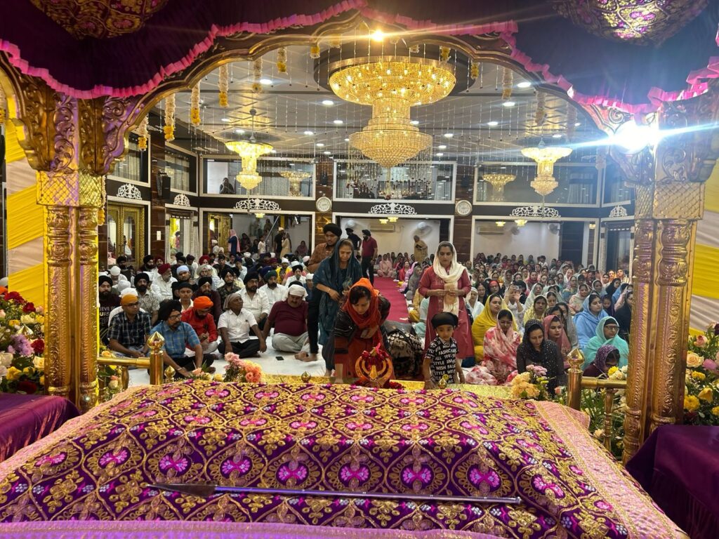 नाम सिमरन के बाद समुह साध संगत श्री गुरुग्रंथ साहिब जी का पावन स्वरूप पालकी साहिब मे सुशोभित कर पार्किंग की तरफ से होते हुए गुरुद्वारा भवन के मुख्य द्वार तक किर्तन और राश्ते फूलो की बरखा के साथ ही शानदार आतिश बाजी फेयरो लाइट आदि स्वागत और अभिनंदन किया गया। हुए बडे अदब और सत्कार के साथ गुरुद्वारा श्री गुरूसिंघ सभा दयालबंद दरबार पहुंची । तत्पश्चात श्री गुरुग्रंथ साहिब जी का पावन स्वरूप प्रकाश किया गया। पुरा गुरुद्वारा शानदार फूलो सुसज्जित किया गया तत्पश्चात संपूर्ण आसा दी वार का किर्तन किया गया।