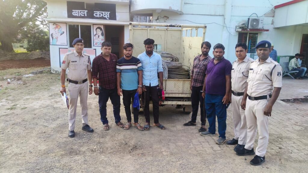 ग्राम छतौना से विद्युत केबल तीन अल्युमिनियम कंडक्टर तार किसी ने पार कर दिए थे, करीब 6 किलोमीटर लंबे तार चोरी की शिकायत मनीष अलगमकर ने चकरभाठा थाने में की थी। चोरी गए तार की कीमत करीब 4 लाख 80 हजार रुपए थी। पुलिस ने कार्यवाही करते हुए तार चोरी करने वाले पांच लोगों को अकलतरा से गिरफ्तार किया है। पुलिस को पता चल गया कि चोरी के तार को माल वाहक टाटा एम गोल्ड क्रमांक सीजी 11 be 8772 में ले जाया गया था, जो अमीर नायक नामक व्यक्ति का था। पूछताछ में पता चला कि उसने यह वाहन कुछ महीने पहले कबाड़ी मनोज टंडन से खरीदा था। उसने इसे चलाने के लिए राकेश मनहर को ड्राइवर रखा था। संदेह पर पुलिस मुरली डीह अकलतरा पहुंची और ड्राइवर राकेश मनहर से पूछताछ की तो वह टूट गया और उसने बताया कि उसने अपने साथी विकास सांडे, गना कुमार जोगी, राकेश मनहर और मनोज टंडन के साथ मिलकर तार चोरी की थी। पुलिस ने तार चोरी करने में इस्तेमाल उपकरण और वाहन को जप्त कर लिया है, तो वहीं मामले में सभी 5 आरोपी गिरफ्तार हो चुके हैं , इनके पास से चोरी का तार भी बरामद कर लिया गया है।