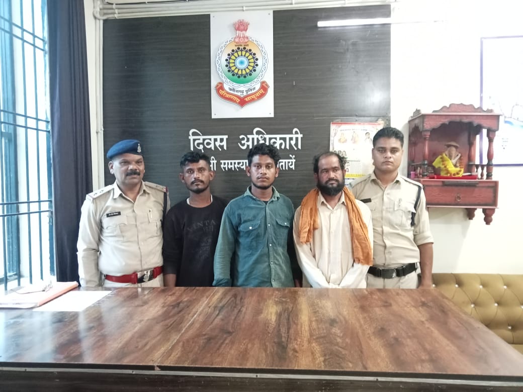 सरकंडा क्षेत्र में आतंक फैला रहे बदमाशों को पुलिस ने गिरफ्तार किया है। मुरूम खदान अशोक नगर में रहने वाले अरमान खान को शुक्रवार शाम करीब 4:00 बजे छोटू खान, आरिफ खान और जिलानी खान ने महामाया आईटीआई के पास बुलाया और वहां पहुंचते ही इन लोगों ने मारपीट और गाली गलौज शुरू कर दी। मना करने पर बदमाशों ने खुखरी से उस पर हमला किया। इस हमले पर अरमान खान चिल्लाने लगा तो उसकी आवाज सुनकर उसके रिश्तेदार और अन्य लोग आ गए, जिन्हें देखकर तीनों बदमाश भाग खड़े हुए। मामले की शिकायत के बाद पुलिस ने तीनों आरोपियों छोटू खान उर्फ मुस्तकीम खान, आरिफ खान और जिलानी खान को अशोकनगर मुरुम खदान से घेराबंदी कर पकड़ा। आरोपियों में से आरिफ खान के पास से खुखरी बरामद किया गया है।