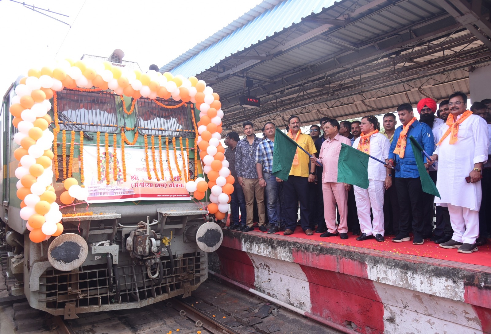 अयोध्या धाम यात्रा के लिए जाने वाले श्रद्धालुओं का स्टेशन में भव्य स्वागत किया गया। गाजे बाजे और पारंपरिक नृत्य से उनका स्वागत हुआ। ये श्रद्धालु काशी विश्वनाथ का भी दर्शन करेंगे। बिलासपुर रेलवे स्टेशन पर भजन गाते हुए विशेष ट्रेन में सवार होकर यात्री रवाना हुए। सभी श्रद्धालुओं की रामलला के दर्शन की अभिलाषा पूरी होने जा रही है।