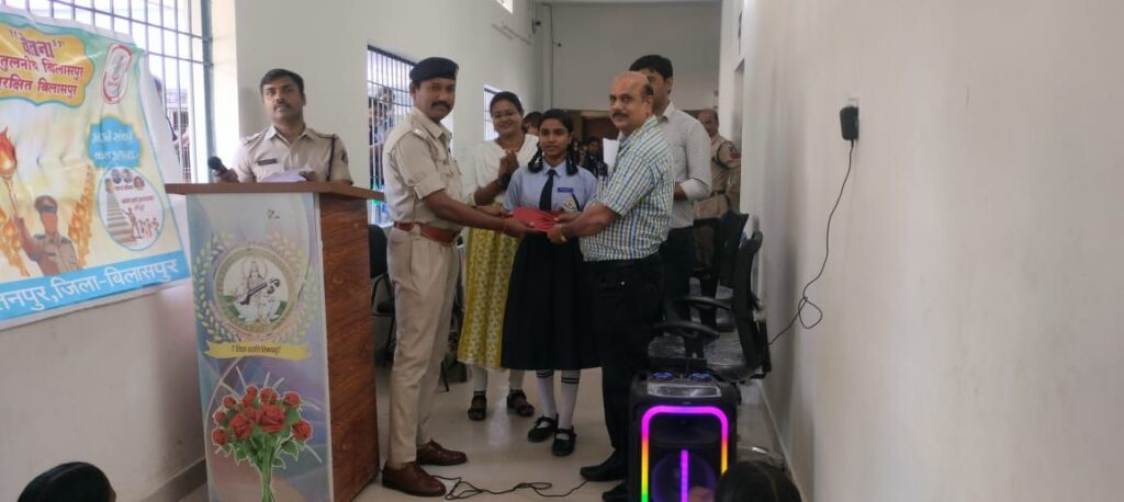 एसपी द्वारा निर्देशित करने पर अतिरिक्त पुलिस अधीक्षक ग्रामीण अर्चना झा एवं अनुविभागीय अधिकारी पुलिस कोटा नुपूर उपाध्याय के मार्गदर्शन में निरीक्षक नरेश कुमार चौहान थाना प्रभारी रतनपुर के द्वारा स्वामी आत्मानंद उत्कृष्ट हिंदी माध्यम स्कूल रतनपुर में स्कूली छात्राओं को चेतना कार्यक्रम के माध्यम से महिलाओं के विरुद्ध अपराध,गुड टच बेड टच, नशा के विरूद्ध जानकारी, अपराध एवं उसने बचने के उपायो, एटीएम फ्रॉड,साइबर क्राइम,यातायात जागरूकता व छात्राओं के कैरियर से संबंधित विस्तार से जानकारी दिया गया। चेतना कार्यक्रम के दौरान स्कूल में पेंटिंग, रंगोली एवं प्रश्नोत्तरी प्रतियोगिता रखा गया था, जिसमें स्कूली छात्राओं ने बढ़-चढ़कर हिस्सा लिया।