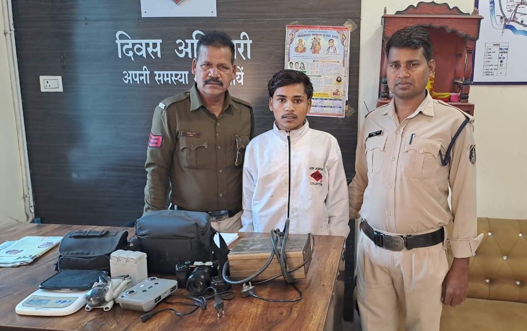 सरकंडा थाना क्षेत्र में रहने वाला तेजस्वी वर्मा पार्ट टाइम वीडियो ग्राफी फोटोग्राफी का कार्य करता है। 1 दिसंबर की रात को खाना खाकर वह सो गया। वह जिस मकान में रहता है वहां चार-पांच और भी लोग रहते हैं इसलिए कमरे का दरवाजा बंद नहीं किया था। अगले दिन सुबह 9:00 बजे सब सो कर उठा तो उसने देखा कि टेबल में मौजूद सोनी कंपनी का कैमरा, एक ड्रोन कैमरा इलेक्ट्रॉनिक ईविंग मशीन आदि गायब है। जिसकी कीमत करीब 95,300 रु थी। इसकी शिकायत सरकंडा थाने में की गई ।पुलिस ने मामला दर्ज कर चोर की तलाश शुरू की। इसी दौरान 2 दिसंबर को ई-रिक्शा चालक राजू जैन के घर के सामने खड़े ई रिक्शा से किसी ने बैटरी चार्जर पार कर दिया, जिसकी कीमत ₹6000 थी। सीसीटीवी की मदद से सरकंडा पुलिस ने बंगाली पारा निवासी विकास पांडे उर्फ गट्टू महाराज को पकड़ा तो उसने बैटरी चार्जर कैमरा आदि की चोरी की बात स्वीकार की। पुलिस ने उसके पास से चोरी की सामग्री बरामद कर ली है।
