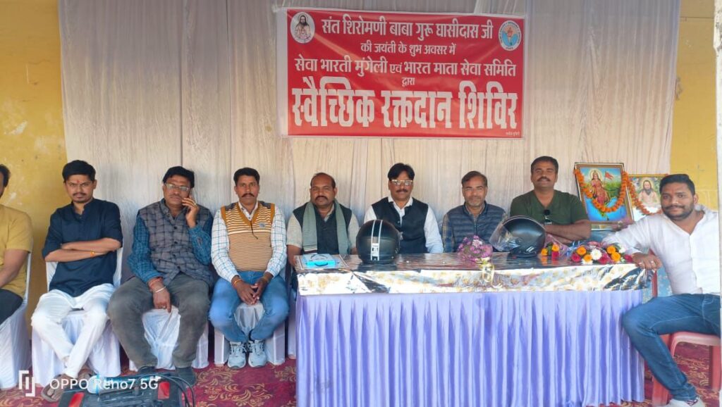 सेवा भारती मुंगेली, भारत माता सेवा समिति द्वारा संत शिरोमणि बाबा गुरु घासीदास के प्रकाश पर्व पर स्वछैच्कि रक्तदान शिविर का आयोजन नगर पालिका विद्यालय में किया