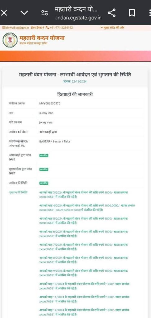 दरअसल महतारी वंदन योजना के तहत मशहूर पोर्न स्टार सनी लियोन के खाते में हर महीने ₹1000 ट्रांसफर हो रहे थे। इसका खुलासा हुआ तो हर तरफ तहलका मच गया। जांच में पता चला कि न सिर्फ फिल्म स्टार और पूर्व पोर्न स्टार सनी लियोन के नाम पर महतारी वंदन योजना का पैसा जा रहा था बल्कि उसके पति के तौर पर एक और पोर्न स्टार जॉनी सिंस का नाम दर्ज है। जाहिर है इसमें बड़ी चूक हुई है। वही बड़ा सवाल यह है कि डीबीटी के माध्यम से यह राशि सीधे बैंक खाते में जमा हो रही थी, यानी सनी लियोन के नाम से फर्जी बैंक अकाउंट भी है। बड़ा सवाल यह है कि आखिर यह बैंक अकाउंट कैसे खुल गया ?