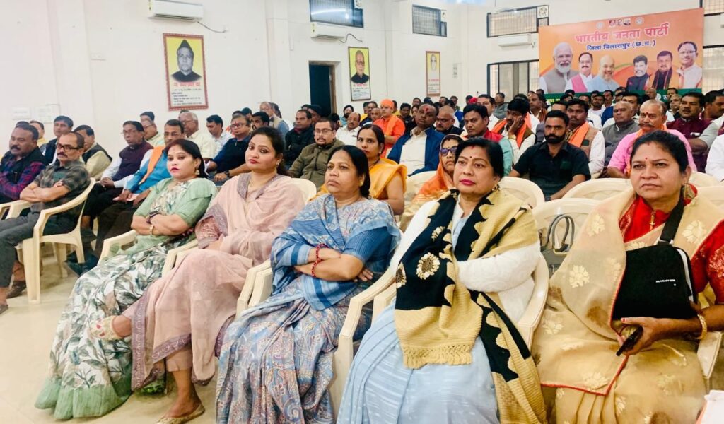इस अवसर पर केंद्रीय राज्य मंत्री तोखन साहू तखतपुर विधायक धर्मजीत सिंह, जिला निर्वाचन पर्यवेक्षक शंकर अग्रवाल जिलाध्यक्ष रामदेव कुमावत जिला पंचायत अध्यक्ष अरुण सिंह चौहान जिला महामंत्री मोहित जयसवाल घनश्याम कौशिक हर्षिता पाण्डे गुलशन ऋषि अमर जीत दुआ लवकुश कश्यप राजेश त्रिवेदीजिला चुनाव प्रभारी कृष्ण कुमार कौशिक सह प्रभारी जयश्री चौकसे मंच पर उपस्थित रहे