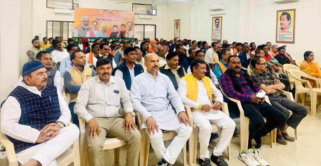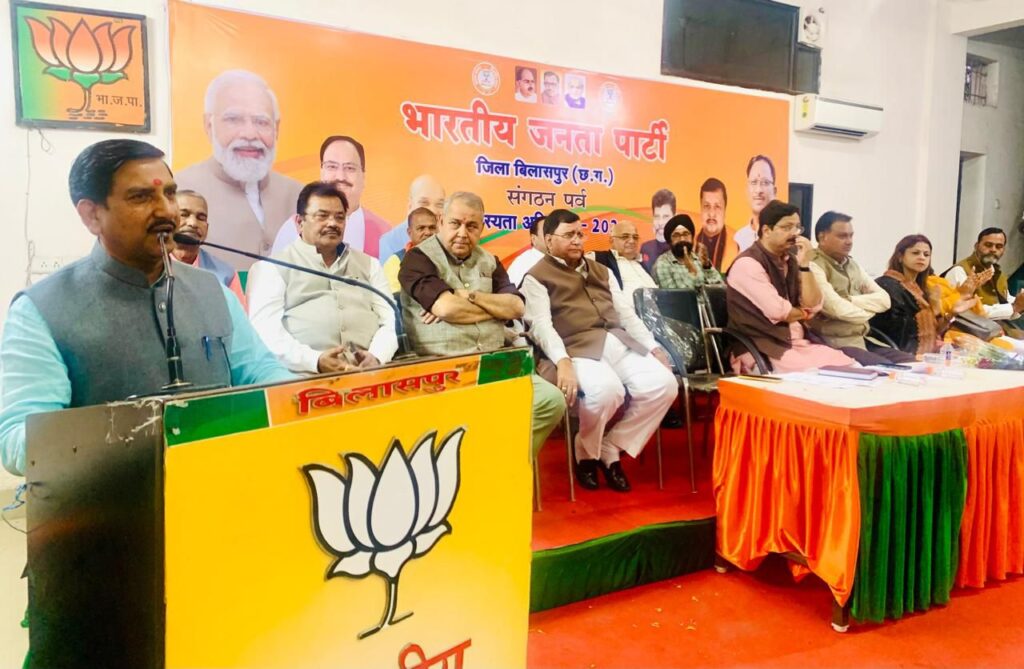 आज जिला भाजपा कार्यालय में आपेक्षित श्रेणीवर्ग के कार्यकर्ताओं की शार्ट नोटिस भेज कर बैठक बुलाई गई जिसमें नवनिर्वाचित मण्डल अध्यक्ष पूर्व मण्डल अध्यक्ष सहित प्रदेश पदाधिकारियों सदस्यों जिला एवं मोर्चा पदाधिकारी,जिला पंचायत नगर पंचायत के अध्यक्ष उपाध्यक्ष बैठक में आमंत्रित किए गए जिला निर्वाचन प्रभारी अनुराग सिंहदेव और निर्वाचन पर्यवेक्षक शंकर अग्रवाल ने बिलासपुर जिले में संगठन के लिहाज से दो पृथक जिले की घोषणा करते हुए जिलाध्यक्ष के नाम पर कार्यकर्ताओं से बंद कमरे में एक एक कर सुझाव मांगे इस आशय पर बात करते हुए जिला निर्वाचन प्रभारी अनुराग सिंहदेव ने बताया कि केंद्रीय नेतृत्व की यह मंशा है कि संगठनात्मक दृष्टि से कार्य को सुगम बनाने मंशा से भाजपा के मण्डल और जो जिले बड़े हैं उनका परिसीमन किए जाने के सुझाव भेजे गए हैं संगठन की दृष्टि से प्रदेश में बिलासपुर ऐसा इकलौता जिला है जिसमें छः विधानसभाओं का समावेश है आज की घोषणा के बाद