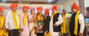 बिलासपुर। अमरावती महाराष्ट्र में आयोजित अखिल भारतीय नामदेव श्रत्रिय महासंघ नई दिल्ली की विशेष बैठक में 18 राज्यों के प्रतिनिधियों ने भास्कर राव टोम्पे को सर्वसम्मति से राष्ट्रीय अध्यक्ष घोषित किया है। महासंघ के महेश माडवे पुणे ने नए अध्यक्ष के नाम का प्रस्ताव रखा। विशेष सम्मेलन के मुख्य अतिथि पद्मश्री रामकिशोर डेरा वाले ने राष्ट्रीय अध्यक्ष के नाम की घोषणा कर उन्हें बधाई दी। रविवार 29 दिसंबर को अमरावती में आयोजित महासंघ की विशेष बैठक में महासंघ के पदाधिकारी एवं प्रतिनिधियों ने महासंघ के अध्यक्ष के रूप में भास्कर राव के नाम का समर्थन किया। फेडरेशन के कार्यकारी अध्यक्ष ज्वाला प्रसाद नामदेव ने पहले महासंघ का प्रतिवेदन पढ़ते हुए, महासंघ के 44 साल के कार्यकाल की जानकारी देते हुए नई कार्यकारिणी का प्रस्ताव रखा। विशेष सम्मेलन में ज्वाला प्रसाद नामदेव बाबा साहेब अंबेलकर, रामकिशोर छिपा डेरा वाला, एस एस टोनी नई दिल्ली, एम एल नामदेव भोपाल, साधु प्रसाद नामदेव भोपाल भानुमति गुजारनिया इंदौर, राकेश नामदेव देहरादून, महादेव खटावकर, प्रशांत लालगे कर्नाटक, सुमन ताई ब्राह्मण मनोहर पेनके, नितिन श्रेयस्कर, उषा ताई सहित सभी राज्यों के प्रतिनिधियों ने सर्वसम्मति के साथ भास्कर राव टोम्पे को फेडरेशन का नया अध्यक्ष चुने जाने पर समर्थन दिया और फेडरेशन के नवनियुक्त अध्यक्ष को बधाई देते हुए फूल माला से स्वागत किया। छत्तीसगढ़ बिलासपुर से ज्वाला प्रसाद नामदेव, एनपी नामदेव, कमल किशोर वर्मा, जगन्नाथ प्रसाद नामदेव, अखिल वर्मा,सुधा नामदेव, अखिलेश नामदेव ने महासंघ के नए राष्ट्रीय अध्यक्ष भास्कर राव टोम्पे का फूल माला से स्वागत किया।