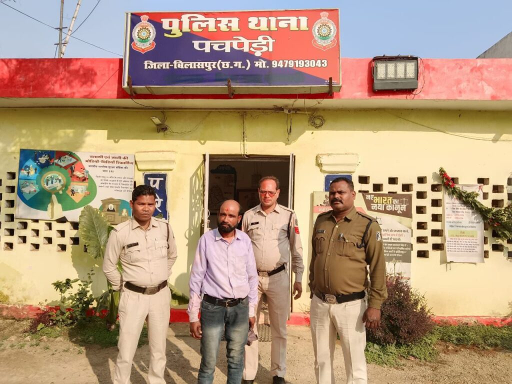 पचपेड़ी पुलिस को सूचना मिली थी कि भुरकुंडा तालाब के पास कोई व्यक्ति फरसा ले कर लोगों को डरा धमका रहा है। पुलिस की एक टीम मौके पर पहुंची, जिसने घेराबंदी कर भुरकुंडा पचपेड़ी निवासी 45 वर्षीय सोन साय को गिरफ्तार किया। पुलिस ने उसके पास से फरसा बरामद किया है, जिसके खिलाफ आर्म्स एक्ट के तहत कार्रवाई की गई है।