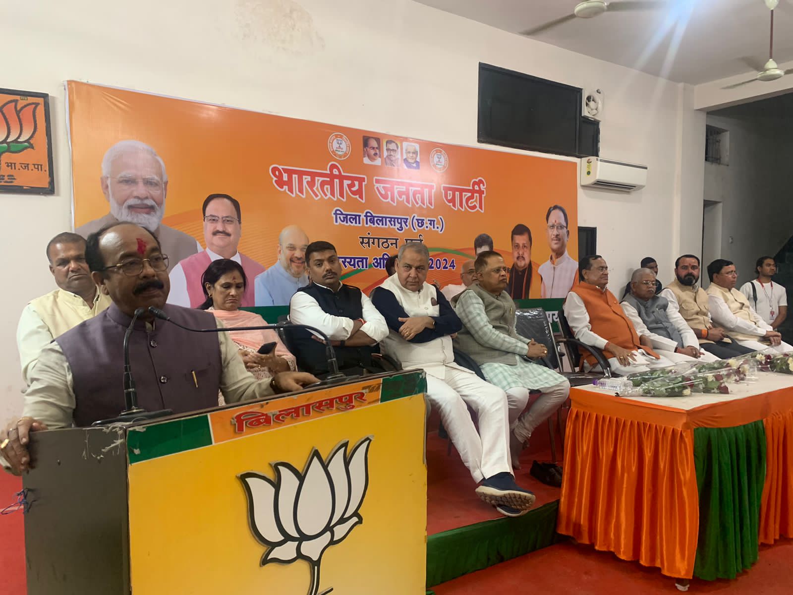 बैठक में केंद्रीय राज्य मंत्री तोखन साहू बिल्हा विधायक धरमलाल कौशिक तखतपुर विधायक धर्मजीत सिंह बेलतरा विधायक सुशांत शुक्ला पूर्व प्रदेश उपाध्यक्ष भूपेन्द्र सवन्नी जिलाध्यक्ष ग्रामीण मोहित जयसवाल जिलाध्यक्ष शहर दीपक सिंह पूर्व जिलाध्यक्ष रामदेव कुमावत महापौर प्रत्याशी पूजा विधानी किशोर राय गुलशन ऋषि अशोक विधानी मंच पर उपस्थित रहे।