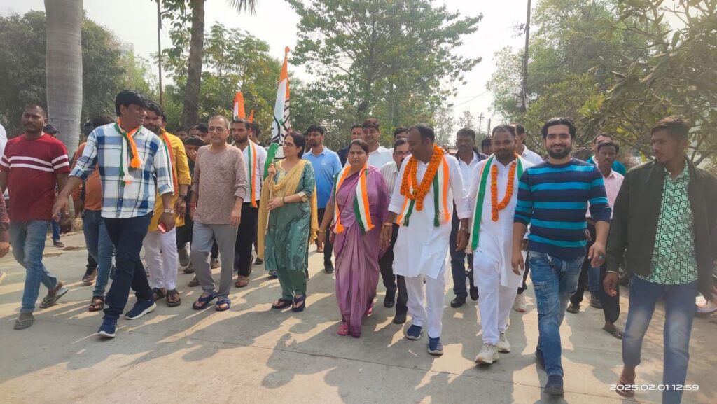बिलासपुर। कांग्रेस के महापौर प्रत्याशी प्रमोद नायक ने आज सकरी उसलापुर ,घुरू ,अमेरी सहित लगभग 9 वार्डों में सघन संपर्क करते हुए कांग्रेस को जिताने की अपील की है। आज सकरी तथा उसलापुर में कांग्रेस उम्मीदवार प्रमोद नायक के साथ पूर्व विधायक शैलेश पांडे, रश्मि सिंह पार्षद पद के उम्मीदवार, अमित भारते तथा तथा बजरंग सभी वार्डों में पदयात्रा करते हुए कांग्रेस के पक्ष में चुनाव प्रचार किया।
