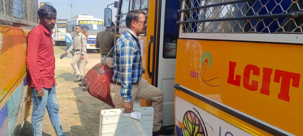 प्रत्याशियों की मौजूदगी में स्ट्रांग रूम खोला गया। सामग्री वितरण के लिए बनाए गए काउंटर से मतदान दल के पीठासीन अधिकारी एवं मतदान अधिकारियों ने अपने-अपने मतदान केंद्र के लिए सामग्री प्राप्त की और अपने दल के साथ निर्धारित मतदान केन्द्रों के लिए रवाना हुए। उनके साथ सेक्टर अधिकारी भी रवाना हुए। दल के साथ एक-एक सुरक्षाकर्मी भी तैनात रहेंगे। जिले में निर्वाचन संपन्न कराने के लिए 2 हजार 776 मतदान कर्मियों की ड्यूटी लगाई गई है। इनमें रिजर्व मतदान कर्मी भी शामिल है।