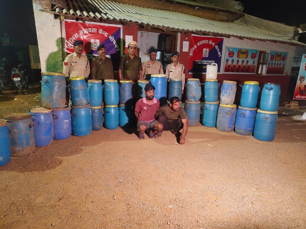 पंचायत चुनाव में खपाने के लिए भारी मात्रा में अवैध महुआ शराब का भंडारण किया गया था। इस पर कार्यवाही करते हुए सरकंडा पुलिस ने 1160 लीटर महुआ शराब पकड़ा है। पुलिस को सूचना मिली थी कि ग्राम चिल्हाटी नदी किनारे श्मशान घाट के पास धनराज रात्रे और धर्मजीत रात्रे ने भारी मात्रा में महुआ शराब बनाकर बेचने के लिए स्टॉक किया है। टीम मौके पर पहुंची तो उनके हाथ 1160 लीटर कच्ची महुआ शराब लगी, जिसकी कीमत 2,32000 रु है। पुलिस ने आरोपियों के पास से एक मोटरसाइकिल भी जप्त किया है । आबकारी एक्ट के तहत कार्रवाई करते हुए ग्राम चिल्हाटी निवासी धनराज रात्रे और धर्मजीत रात्रे को गिरफ्तार कर दिया गया है।
