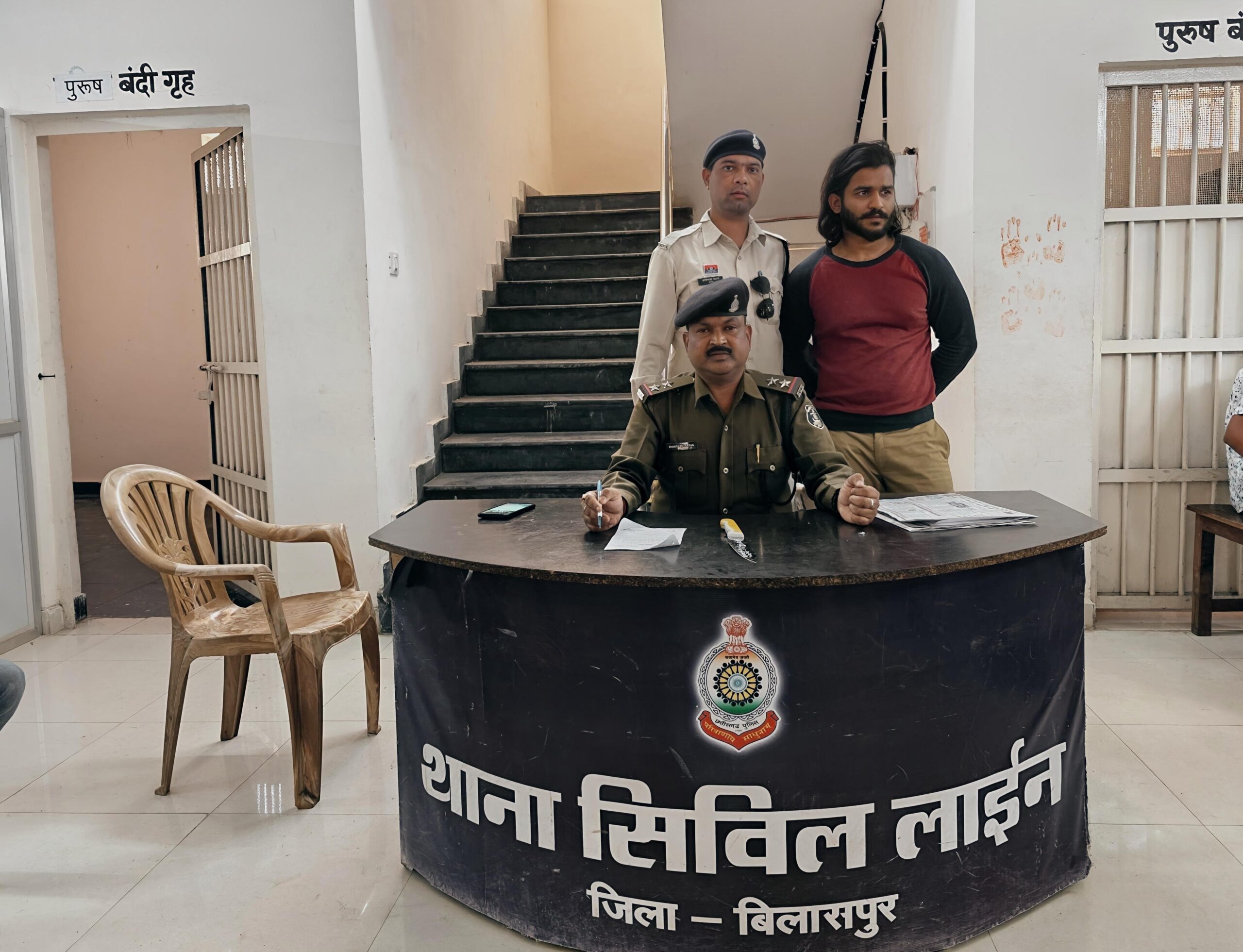 बिलासपुर, थाना सिविल लाइन क्षेत्र में पुलिस ने एक बदमाश को गिरफ्तार किया है, जो रघुराज स्टेडियम के पीछे चाकू लहराकर लोगों में भय पैदा कर रहा था। सूचना मिलने पर सिविल लाइन पुलिस की पेट्रोलिंग टीम तुरंत मौके पर पहुंची और घेराबंदी कर बदमाश को पकड़ लिया।