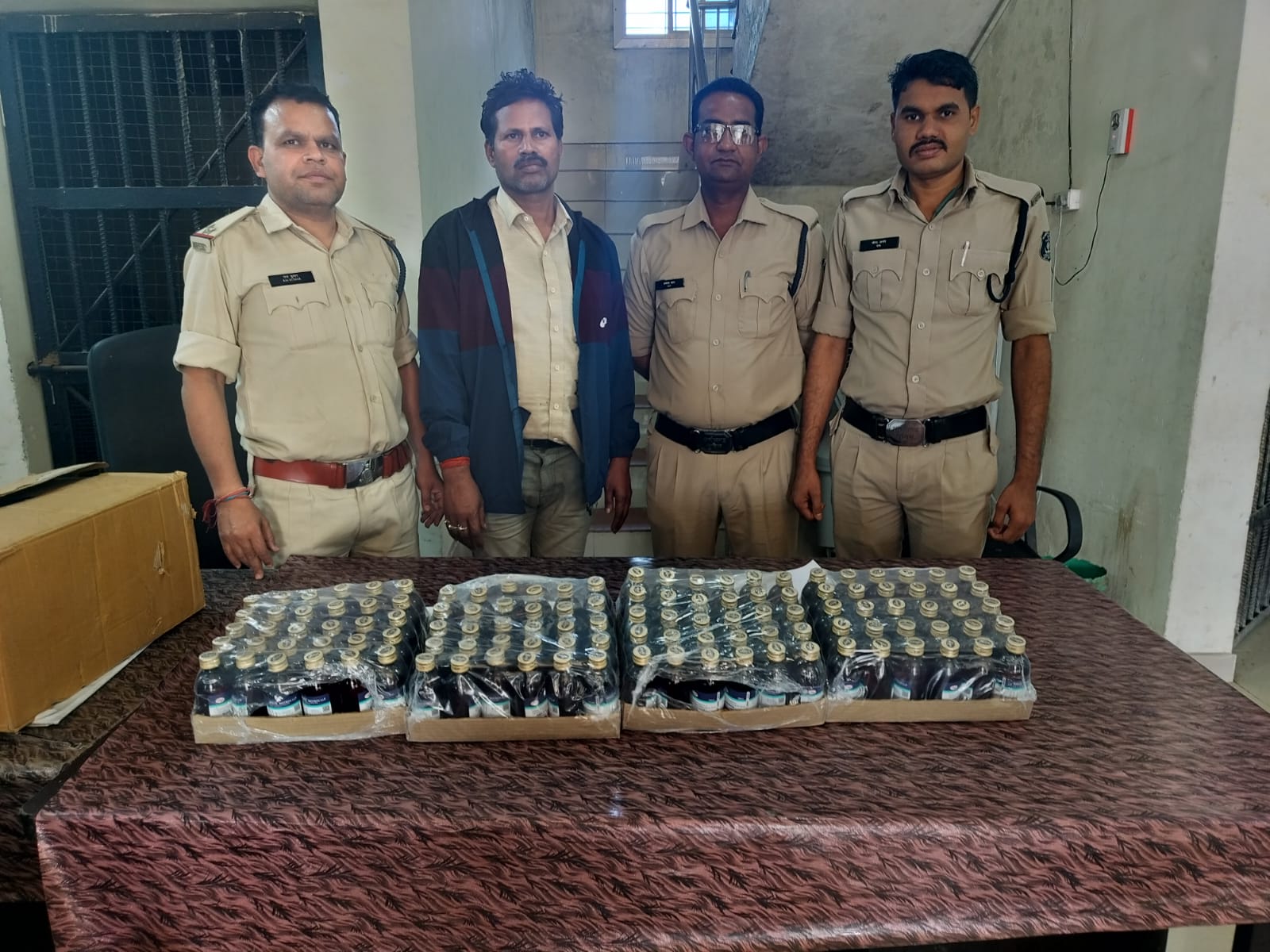 पुलिस ने आरोपी मिथिलेश तिवारी (उम्र 46 वर्ष, निवासी हीरापुर, थाना कबीर नगर, रायपुर) को गिरफ्तार कर लिया। आरोपी से पूछताछ में उसने नशीली कफ सिरप के अवैध परिवहन की बात कबूल की।