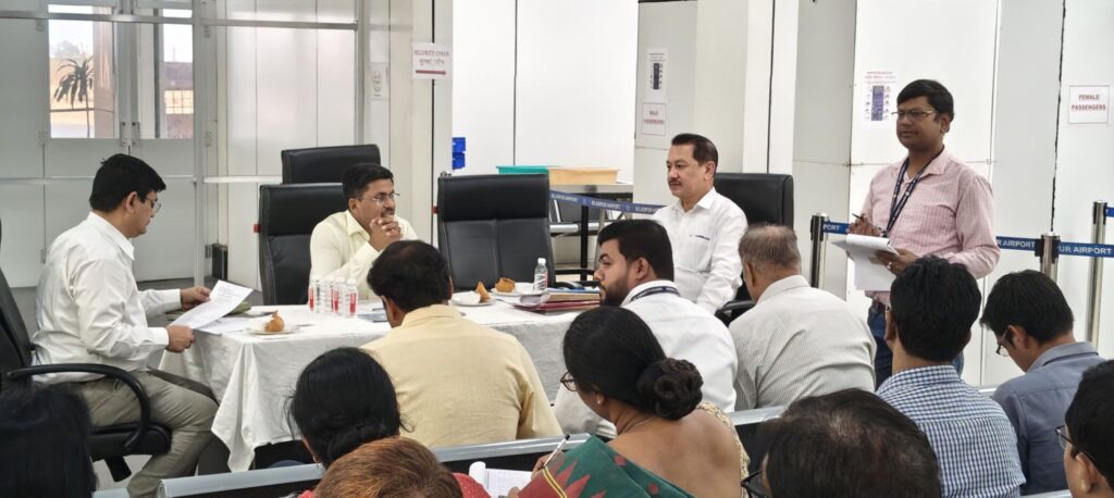 चूंकि एरोड्रम कमिटी मीटिंग साल में दो बार की जाती है। जिसमें इस मीटिंग के बारे में सारे सदस्यों की जिम्मेदारी एवं भूमिका वास्तविक विमान के अपहरण जैसी घटना के समय होने वाले स्थिति से निपटने के लिए चर्चा की जाती है। एरोड्रोम इन्वायरमेंट मैनेजमेंट कमिटी मीटिंग भी साल में दो बार की जाती है। इस मीटिंग के सदस्य जैसे एसपी, एयरपोर्ट नोडल अधिकारी, एयरपोर्ट डायरेक्टर , सेफ्टी मैनेजर, जिला वन अधिकारी, अनुविभागीय अधिकारी, तहसीलदार, मुख्य नगरपालिका अधिकारी नगर पंचायत, स्थानीय पुलिस तथा अन्य अधिकारी होते हैं। मीटिंग के सभी सदस्यों से विमानों के उड़ान के समय पक्षियों एवम वन्य जीव से टकराने जैसी समस्याओं के बचाव के लिए चर्चा की गई।