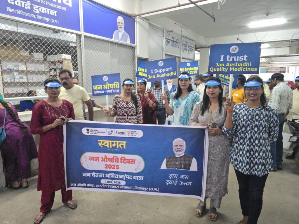 बिलासपुर,01 मार्च 2025/भारतीय रेडक्रास सोसायटी जिला शाखा बिलासपुर द्वारा कलेक्टर एवं अध्यक्ष रेडक्रास अवनीश शरण के कुशल मार्गदर्शन में जन औषधि सप्ताह के अंतर्गत प्रथम दिवस पर जन औषधि की सस्ती दवा के प्रति आम जनों को जागरूक करने के उद्देश्य से जनजागरण रैली आयोजित की गई। रैली का आयोजन जिला अस्पताल परिसर से शहर के मुख्य मार्गों को भ्रमण करते हुए रिवर व्यू तक किया गया l