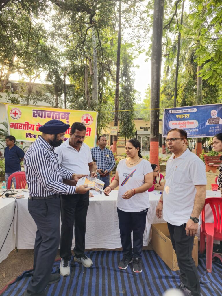 श्री अमरजीत सिंह दुआ कोषाध्यक्ष रेडक्रास प्रबंध समिति, श्री सैयद जफर अली सदस्य प्रबंध समिति, श्री सौरभ सक्सेना जिला समन्वयक श्री आदित्य पांडेय प्रभारी रेडक्रास एवं श्री प्रणय मजुमदार नोडल अधिकारी जनऔषधि के द्वारा शिविर में आए सभी लोगों को पेन एवं नोट बुक वितरित किया गया । साथ ही जन औषधि की उच्च गुणवत्ता की सस्ती दवाइयों के बारे में जानकारी दी गयी।
