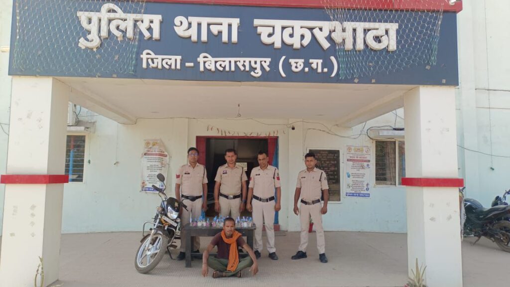 अवैध शराब के खिलाफ कार्रवाई करते हुए चकरभाठा पुलिस ने 35 पाव देसी शराब जप्त किया है। पुलिस को सूचना मिली थी कि ग्राम छतौना में आरोपी लक्ष्मी प्रसाद धुरी के पास भारी मात्रा में शराब है, जिसे वह अपनी मोटरसाइकिल में लेकर जा रहा है । पुलिस ने घेराबंदी कर लक्ष्मी प्रसाद धुरी को पकड़ा तो उसके मोटरसाइकिल क्रमांक सीजी 10 BX 5067 में कुल 6.3 लीटर देसी शराब मिली जिसकी कीमत 3150 रुपए है। पुलिस ने ₹80,000 कीमती उसके मोटरसाइकिल को भी शराब के साथ जप्त कर लिया है। आबकारी एक्ट के तहत पुलिस ने छतौना चकरभाठा निवासी लक्ष्मी प्रसाद धुरी को गिरफ्तार किया है ।