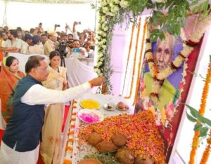 रायपुर 6 अप्रैल 2025/मुख्यमंत्री श्री विष्णु देव साय आज पाटन(दुर्ग ) के नजदीक स्थित ग्राम सोनपुर में आयोजित स्व. श्री मोहन कुंभकार की श्रद्धांजलि सभा में सम्मिलित हुए। इस अवसर पर मुख्यमंत्री श्री साय ने स्व.श्री मोहन कुंभकार के छायाचित्र पर पुष्प अर्पित कर श्रद्धांजलि दी और उनके योगदान को स्मरण करते हुए उन्हें श्रद्धासुमन अर्पित किया। मुख्यमंत्री श्री साय ने शोकसंतप्त परिवार के प्रति गहरी संवेदना व्यक्त करते हुए कहा कि स्व. मोहन कुंभकार ने सामाजिक जीवन में सराहनीय कार्य किए। उनका जाना हम सभी के लिए एक अपूरणीय क्षति है। उन्होंने ईश्वर से प्रार्थना की कि परमपिता परमेश्वर दिवंगत आत्मा को अपने श्रीचरणों में स्थान दें और परिवार को इस कठिन समय में संबल प्रदान करें।