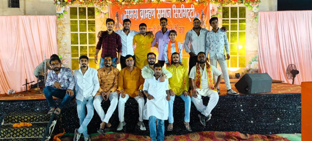 जिसके पश्चात आयोजन स्थल में गंगा आरती की तर्ज पर भगवान श्री परशुराम जी की भव्य महाआरती की गई ,साथ ही वार्ड नंबर 10 सिरगिट्टी बस्ती का नामकरण परशुराम नगर के नाम से किया गया कार्यकम में बिल्हा विधायक श्री धरम लाल कौशिक जी,पूर्व कृषि मंडी अध्यक्ष राजेंद्र शुक्ला जी ,जिला पंचायत सदस्य अनिता शुक्ला जी उपस्थि रहे।अतिथियो का समग्र ब्राह्मण समाज सिरगिट्टी के पदाधिकारी के द्वारा शाल श्रीफल के द्वारा स्वागत किया गया। जिसके पश्चात बोर्ड परीक्षा में मेरिट में आएं विद्यार्थी वर्षा पांडेय,ऋषभ चौबे, पायल वैषणव को विप्र रत्न सम्मान से सम्मानित किया गया। श्री धरम लाल कौशिक के द्वारा ब्राह्मण समाज सिरगिट्टी को कार्यक्रम स्थल की भूमि पर ही भवन बनाकर दिये जाने की घोषणा की गई। कार्यकम के अंत में समग्र ब्राह्मण समाज सिरगिट्टी के द्वारा कार्यक्रम को सफल बनाने के लिए के आभार व्यक्त किया गया कार्यक्रम को सफल बनाने में वरिष्ठ जन ,युवा प्रकोष्ठ ,महिला प्रकोष्ठ एवं बहनों का विशेष योगदान रहा