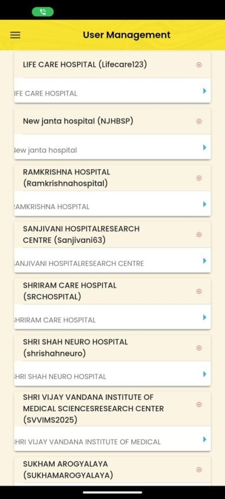 इस योजना के अंतर्गत पंजीकृत प्रमुख अस्पतालों में शामिल हैं:
