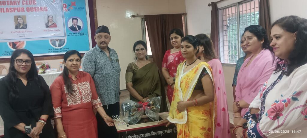 दिनांक 28 जून 2025 को रोटरी क्लब ऑफ़ बिलासपुर क्वीन्स द्वारा महिलाओं को आत्मनिर्भर बनाने हेतु सिलाई मशीन वितरण कार्यक्रम आयोजित किया गया। इस कार्यक्रम के अंतर्गत महिलाओं को सिलाई मशीन प्रदान की गई, ताकि वे सिलाई-कढ़ाई का कार्य कर अपने परिवार का भरण-पोषण स्वावलंबी रूप से कर सकें।