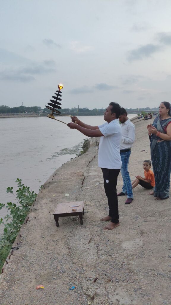 बिलासपुर की जीवनदायिनी मानी जाने वाली मां अरपा नदी की आराधना और संरक्षण का संकल्प लिए “अरपा दाई संध्या आरती सेवा समिति (टीम मानवता)” द्वारा मंगलवार, 08 जुलाई 2025 को आषाढ़ शुक्ल त्रयोदशी की प्रतिपदा तिथि को लगातार 36वें सप्ताह भी संध्या आरती का आयोजन श्रद्धा और सामाजिक चेतना के भाव से संपन्न किया गया।
