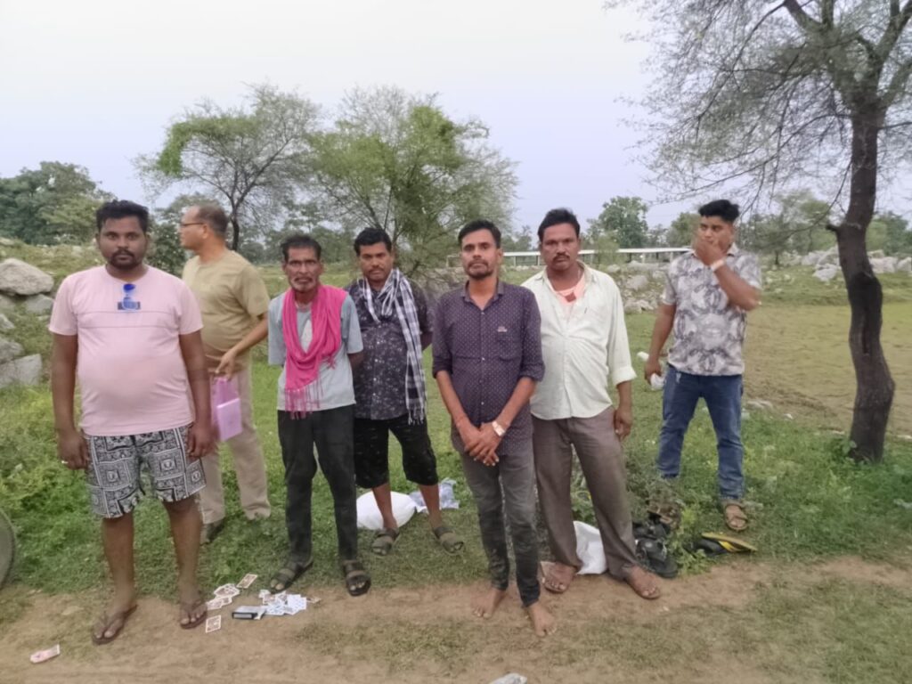 बिलासपुर। पचपेड़ी थाना पुलिस ने जुआ खेलते हुए 5 आरोपियों को रंगे हाथों गिरफ्तार किया, जबकि 4 आरोपी मौके से फरार होने में सफल रहे। पुलिस ने मौके से 52 पत्ती ताश, 16,100 रुपये नगद, और 6 मोटरसाइकिलें (कुल कीमत लगभग 3 लाख रुपये) जब्त की हैं।