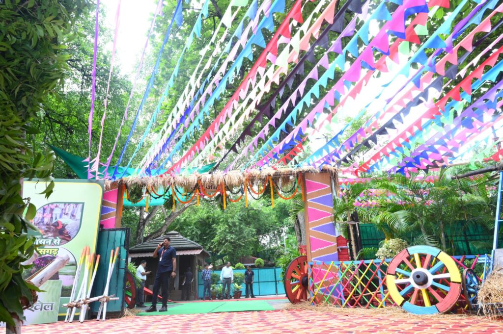 कार्यक्रम मंडप में कृषि यंत्रों की प्रदर्शनी मुख्य आकर्षण है। खास बात यह है कि इस प्रदर्शनी में पारम्परिक और आधुनिक कृषि यंत्रों को एक साथ प्रदर्शित किया गया है। पैडी सीडर, जुड़ा, बियासी हल, तेंदुआ हल और ट्रैक्टर जैसे यंत्र प्रदर्शित हैं।