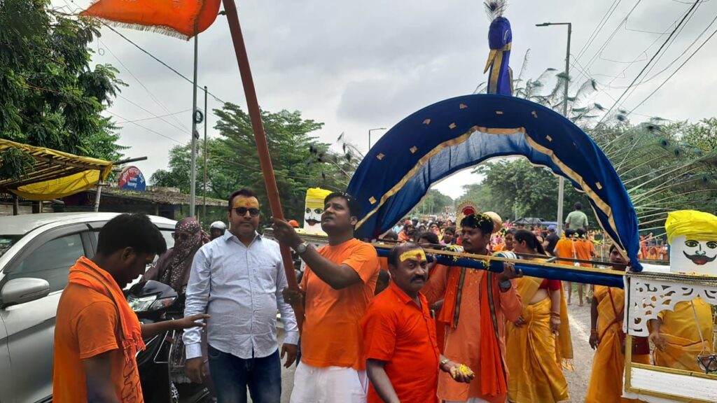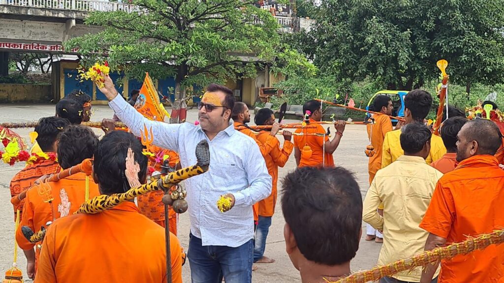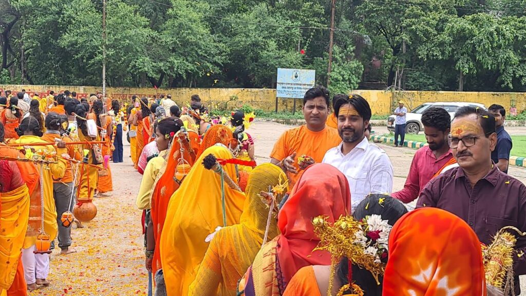 पुष्प वर्षा के साथ कांवड़ियों का किया गया स्वागत