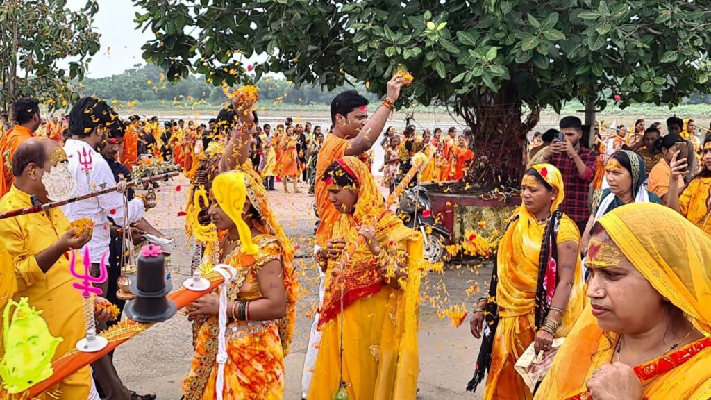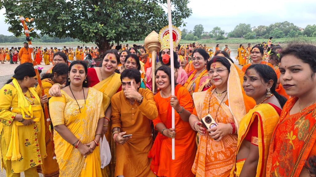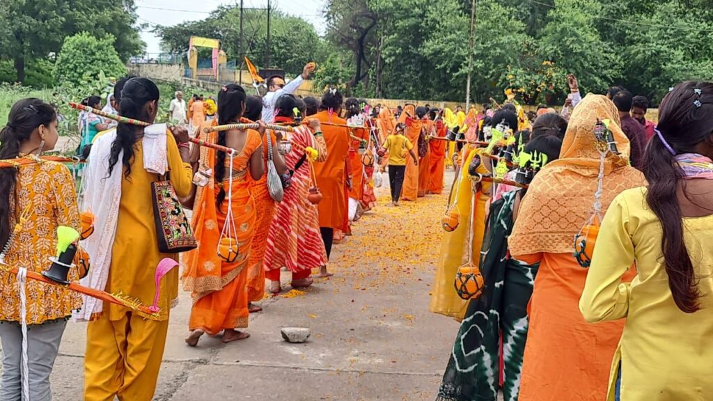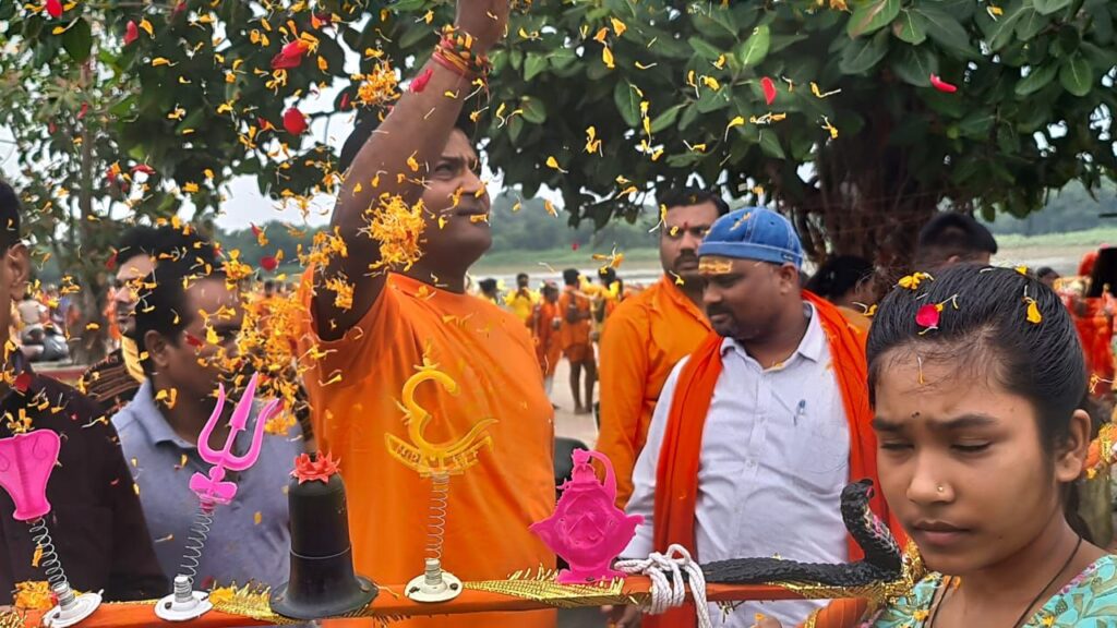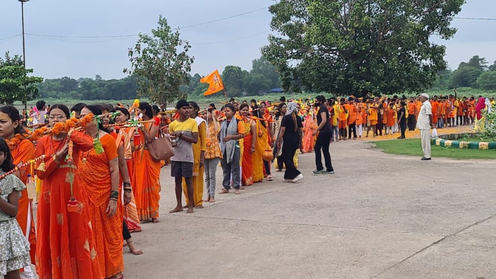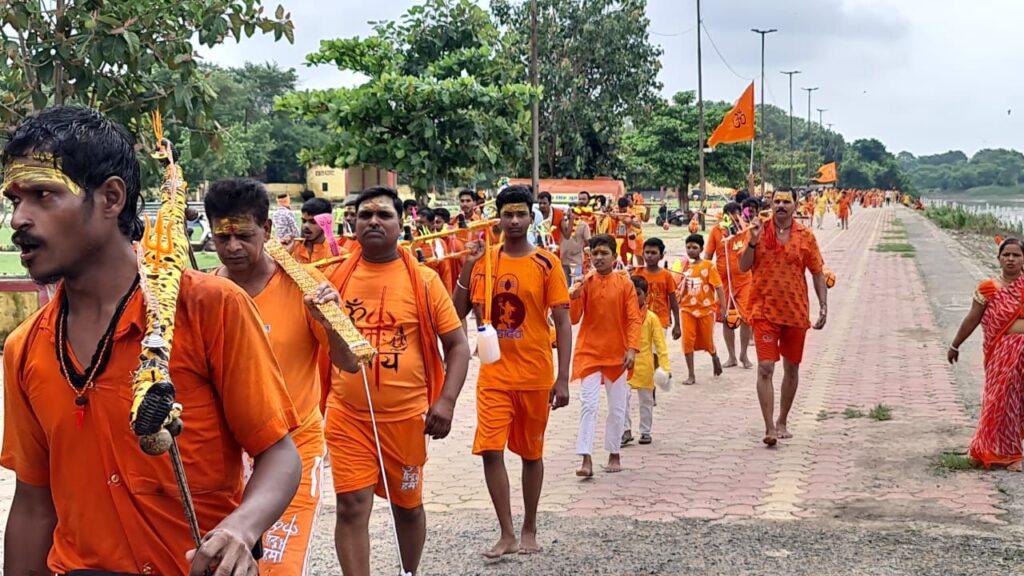 इससे पहले रविवार शाम को छठ घाट पर ही गणेश जी की स्तुति कर सुंदरकांड और हनुमान चालीसा का पाठ किया गया। किसी भी शुभ कार्य से पूर्व गणेश जी की आराधना की परंपरा है जिसका पालन इस बार किया गया, तो वही सावन के तीसरे सोमवार को अरपा नदी के तट पर सुबह से ही बड़ी संख्या में शिव भक्त भगवा वस्त्रों में कावड़ लेकर पहुंचे । इनमें से कुछ कावड़ियों के पास बेहद आकर्षक कावड़ भी थे। अरपा नदी से कावड़ में जल भरकर इस यात्रा की शुरुआत हुई। सबसे आगे बैंड, उसके पश्चात कांवड़ में जल ली हुई महिलाएं और उनके पीछे पुरुष दो कतार में कांवर यात्रा पर निकल पड़े। साथ में हनुमान जी की जीवंत झांकी भी चल रही थी। पहली बार यात्रा के सुचारू नियंत्रण के लिए बाउंसर महिला और पुरुष भी तैनात दिखे।
