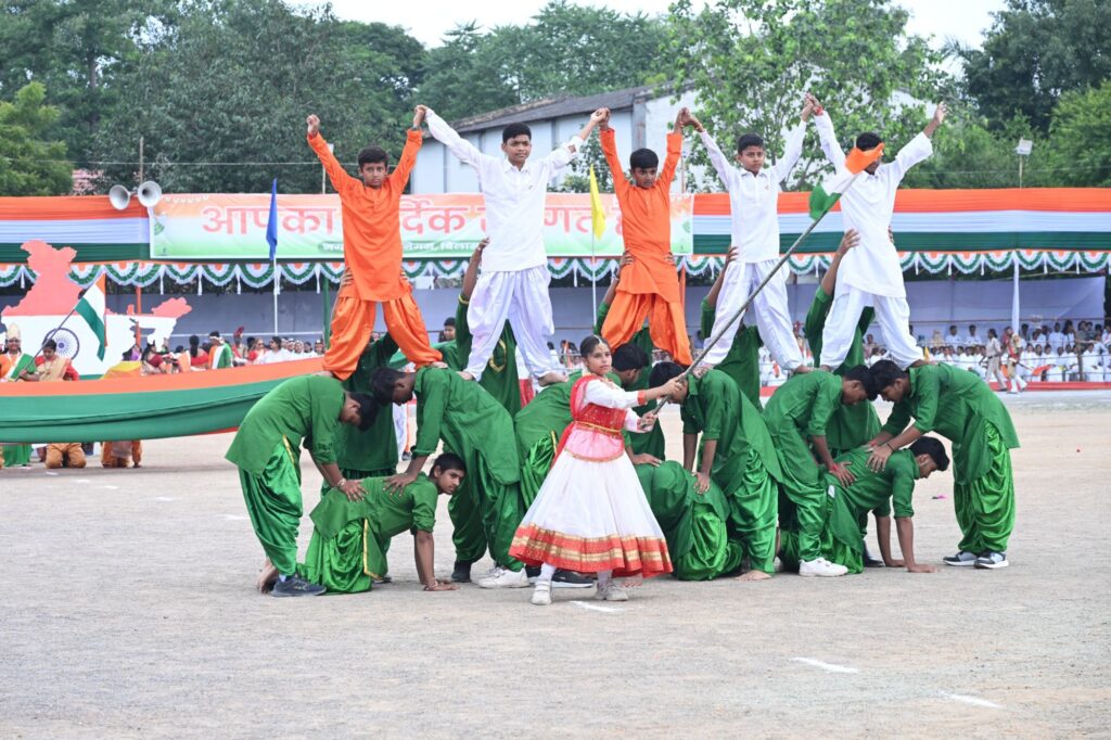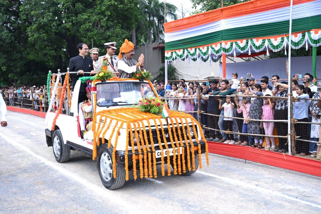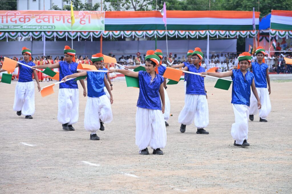 बिलासपुर, 15 अगस्त 2025/आजादी का 79वां पर्व जिले में गरिमामय माहौल में उत्साहपूर्वक मनाया गया। मुख्य समारोह पुलिस ग्राउंड में आयोजित किया गया। उप मुख्यमंत्री एवं जिले के प्रभारी मंत्री श्री अरूण साव ने ध्वजारोहण किया। ध्वजारोहण पश्चात राष्ट्रगान की धुन पर सलामी दी गई। दर्शक अपने स्थान पर खड़े हुए तथा वर्दीधारी अधिकारियों ने सेल्यूट किया। उप मुख्यमंत्री श्री साव ने शांति के प्रतीक सफेद कबूतर उड़ाए और हर्षोल्लास और उमंग के प्रतीक तिरंगे गुब्बारे आकाश में छोड़े। पूरे परिधान में सजे हुए 13 प्लाटूनों ने भव्य एवं आकर्षक परेड का प्रदर्शन किया।