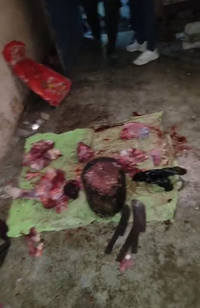 सूत्रों से प्राप्त जानकारी के अनुसार चुलघट रोड़ निवासी धनंजय सिंह क्षत्री ने थाने में रिपोर्ट दर्ज कराया है कि वार्ड क्रमांक 4 मिशन कम्पाउण्ड में दो युवक साउल मसीह पिता सुनील समीह उम्र 30 वर्ष एवं संजय खेस पिता जानसन खेस उम्र 55 वर्ष ने गाय को काटकर उसकी मांस बेचने की तैयारी कर रहे थे। इसकी सूचना मिलने पर हिंदू संगठनों के सदस्य पहुंचें और दोनों आरोपीयों को गाय के मांस काटते हुए मिले। कृष्ण जन्माष्टमी जैसे पर्व के दिन गौ हत्या कर उसकी मांस काटने की घटना की जानकारी मिलते ही लोगों में भारी आक्रोश था तथा आरोपी को तत्काल गिरफतार कर कार्यवाही करने की मांग करने लगे जैसे ही इसकी सूचना पुलिस को मिली थाना प्रभारी अनिल अग्रवाल टीम के साथ मिशनकम्पाउण्ड के पास पहुंचें और दोनों आरोपीयों को धर दबोचा तथा वहां पर गाय के कटे हुए मांस भी मिले पुलिस आरोपीयों को थाने ले लायी तथा इनके खिलाफ के तहत पुलिस ने गिरफ्तार कर धारा कृषक पशु परीक्षण अधिनियम 2004 की धारा 5,10 बीएनएस 299 के तहत अपराध पंजीबद्ध कर मामले को जांच में लिया है। गाय काटने की सूचना मिलने पर टीम घटना स्थल पर पहुंचीं थी और दोनों आरोपीयों को गिरफ्तार कर लिया गया है तथा घटना स्थल को सील कर पशु चिकित्सा विभाग और एफएसएल की टीम को सूचना दी गई पोस्टमार्टम रिपोर्ट आने के बाद कार्यवाही की जाएगी। अनिल अग्रवाल थाना प्रभारी तखतपुर।
