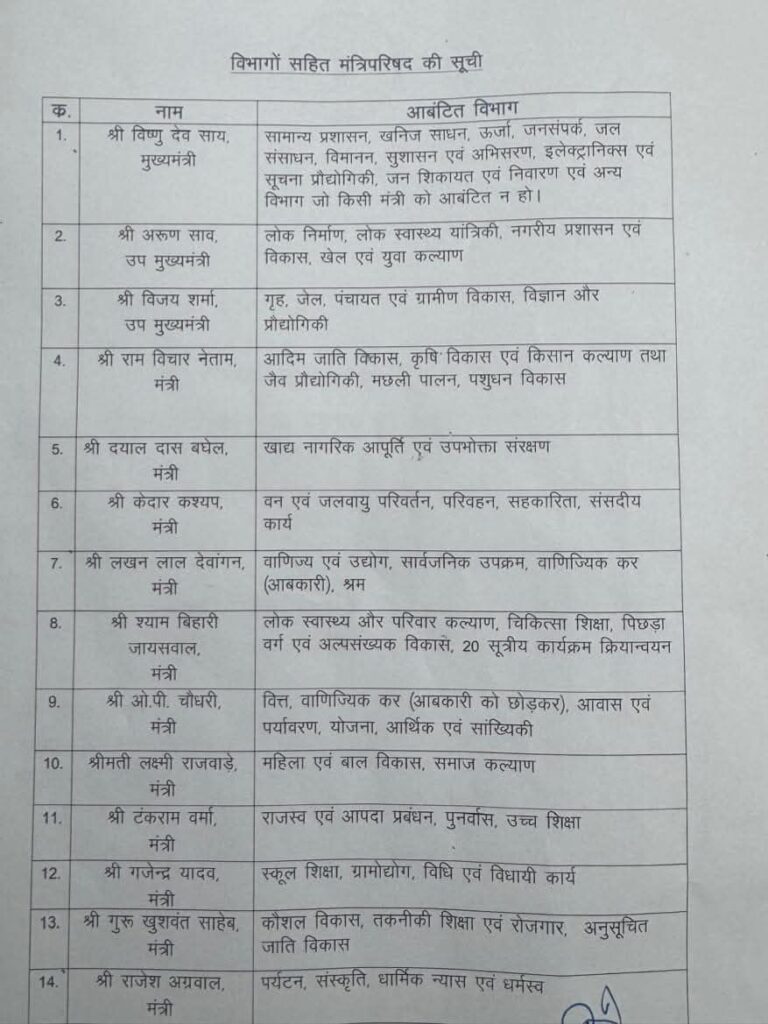 विभागों का बंटवारा