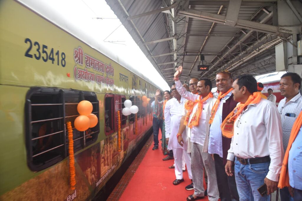 बिलासपुर, 20 अगस्त 2025/श्री रामलला दर्शन योजना के तहत आज भारत गौरव ट्रेन बिलासपुर संभाग के 850 श्रद्धालु को लेकर अयोध्या धाम के लिए रवाना हुई। इस विशेष ट्रेन को जिला पंचायत अध्यक्ष श्री राजेश सूर्यवंशी ने हरी झण्डी दिखाकर रवाना किया। इस अवसर पर जिला पंचायत सीईओ श्री संदीप अग्रवाल, श्री मोहित जायसवाल, जिला प्रशासन के अधिकारी और पर्यटन विभाग के अधिकारी कर्मचारी मौजूद थे। बिलासपुर रेलवे स्टेशन से अयोध्या धाम यात्रा के लिए जाने वाले श्रद्धालुओं का स्टेशन में भव्य स्वागत किया गया। गाजे बाजे और पारंपरिक नृत्य और तिलक लगाकर भक्तों का स्वागत किया गया। ये श्रद्धालु काशी विश्वनाथ का भी दर्शन करेंगे। दर्शन के लिए जा रहे इन श्रद्धालुओं ने मुख्यमंत्री श्री विष्णु देव साय के प्रति आभार व्यक्त किया। अयोध्या धाम के लिए रवाना हुई इस विशेष ट्रेन में बिलासपुर जिले के 225 यात्री भी शामिल हैं। उल्लेखनीय है कि श्री रामलला दर्शन योजना के तहत श्रद्धालुओं को पूरा पैकेज मिलेगा जिसमें छत्तीसगढ़ से अयोध्या जाने, वहां ठहरने की व्यवस्था, मंदिर दर्शन, नाश्ते और खाने की भी व्यवस्था रहेगी। इस ट्रेन में टूर एस्कॉर्ट, सुरक्षा कर्मी और चिकित्सकों का दल भी मौजूद रहेगा।