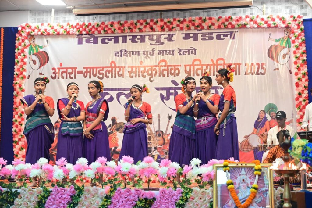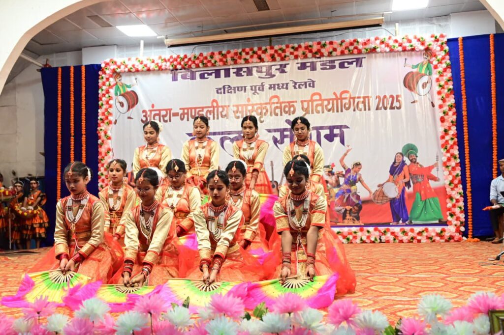 दक्षिण पूर्व मध्य रेल्वे बिलासपुर मंडल द्वारा एनईआई सभागार में अंतरा-मंडलीय सांस्कृतिक प्रतियोगिता 2025 “कला संगम” का आयोजन दिनांक 22.08.2025 को किया गया । जिसमें बिलासपुर मंडल के विभिन्न सेक्शनों शहडोल, मनेन्द्रगढ़, पेंड्रा रोड, रायगढ़, चाम्पा, कोरबा एवं बिलासपुर के कर्मचारियों और उनके परिजनों के लिए आयोजित किए गए टैलेंट हंट कार्यक्रम में चयनित 180 प्रतिभागी शामिल हुये । कार्यक्रम की शुरूआत दीप प्रज्वलित कर की गई । इसके पश्चात प्रतिभागियों द्वारा प्रतियोगिता में विभिन्न सांस्कृतिक विधाओं की प्रस्तुति दी गई जिसमें वादन,एकल गायन, एकल नृत्य, ग्रुप डांस, शास्त्रीय नृत्य की विभिन्न विधाओं जैसे भरतनाट्यम, कत्थक नृत्य के साथ ही लोकनृत्य आदि शामिल थे। इसके अलावा ड्राइंग-पेंटिंग एवं रंगोली प्रतियोगिता का भी आयोजन किया गया | प्रतिभागियों ने इस दौरान अपनी उत्कृष्ट कला प्रस्तुति से दर्शकों का खूब मनोरंजन भी हुआ। इस प्रतियोगिता के विजेताओं के चयन के लिए 04 सदस्यीय निर्णायक मंडल बनाए गए थे | जिसमें सुश्री कविता गंगनेइर, श्रीमति अनमोल सोनी, श्री शैलेंद्रमणि कुशवाहा, तथा सुश्री प्रीती साहू शामिल थे | कार्यक्रम के दूसरे सत्र में मंडल कार्मिक अधिकारी रुहिना तुफैल खान के मुख्य आतिथ्य में पुरस्कार वितरण समारोह का आयोजन हुआ, जिसमे प्रतियोगिता के विजेताओं को मुख्य अतिथि के करकमलों द्वारा पुरस्कृत किया गया। इस अवसर पर अधिकारी गण व कर्मचारी गण अधिकाधिक संख्या में उपस्थित थे | मंडल कार्मिक अधिकारी रुहिना तुफैल खान ने कहा कि "लोक संगीत और नृत्य हमारी संस्कृति की आत्मा है। इस प्रतियोगिता के माध्यम से हम न केवल अपनी सांस्कृतिक विरासत को सहेजने का प्रयास कर रहे हैं, बल्कि इसे नई ऊंचाइयों तक ले जाने का भी संकल्प ले रहे हैं। उन्होने कार्यक्रम एवं प्रस्तुति की प्रशंसा करते हुए विजेताओं एवं सभी प्रतिभागियों को बधाई दी । कार्यक्रम का संचालन श्रीमती मनीषा दीक्षित, श्री धीरज सोनी एवं श्री राकेश श्रीवास ने किया |